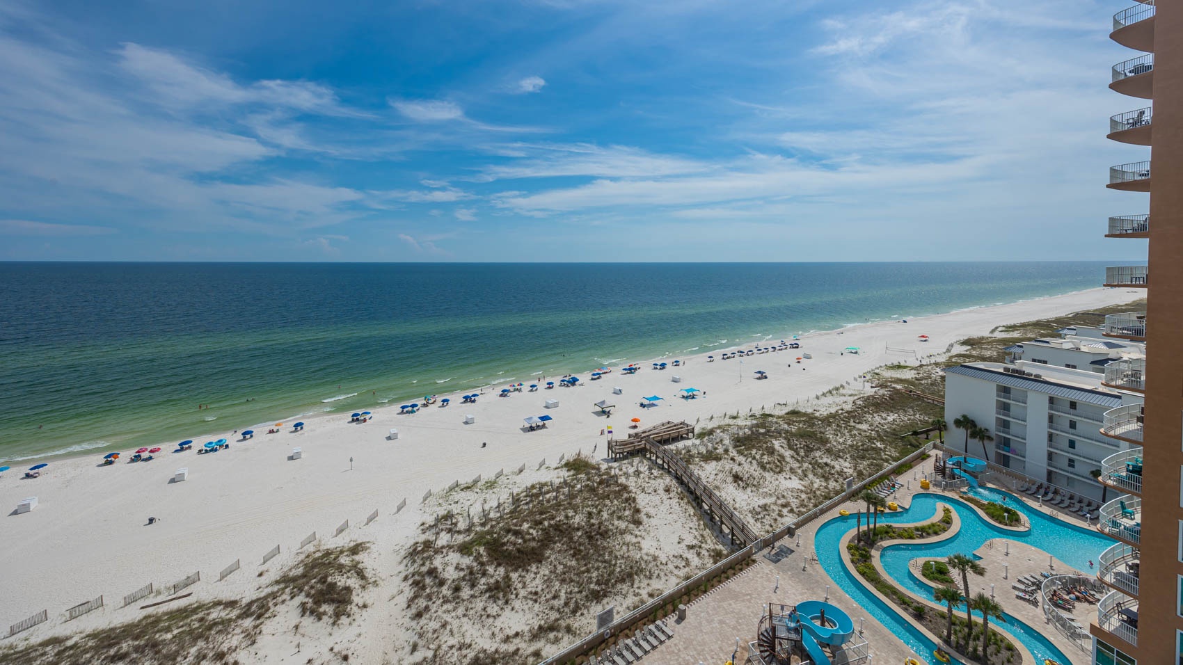 Phoenix Gulf Towers features several luxury amenities including: indoor and outdoor pools, water slide, splash pad, hot tubs, fitness center, covered parking and barbeque grills.
