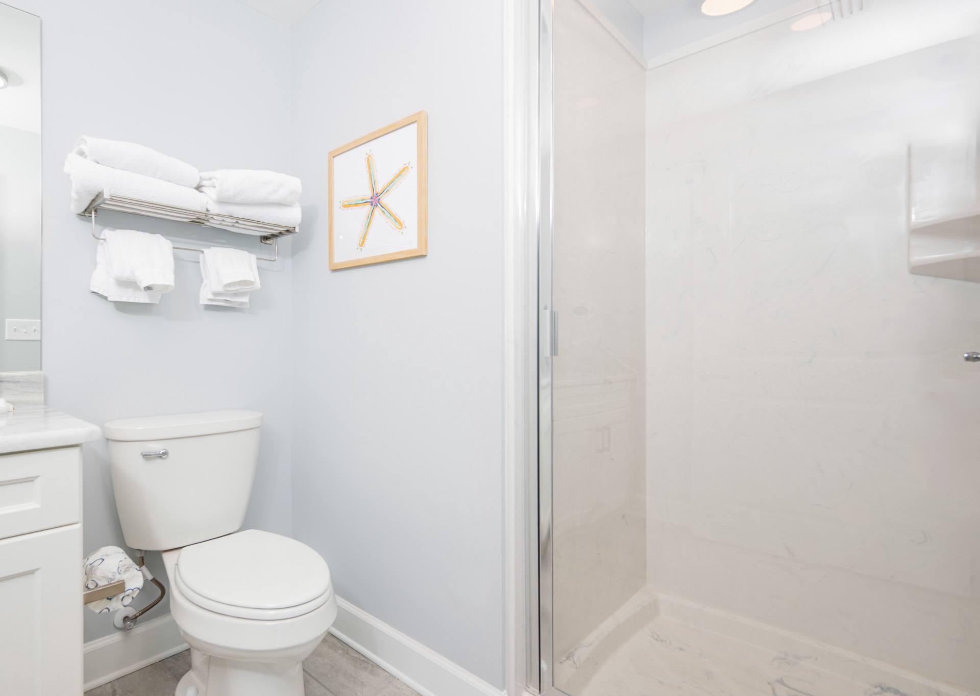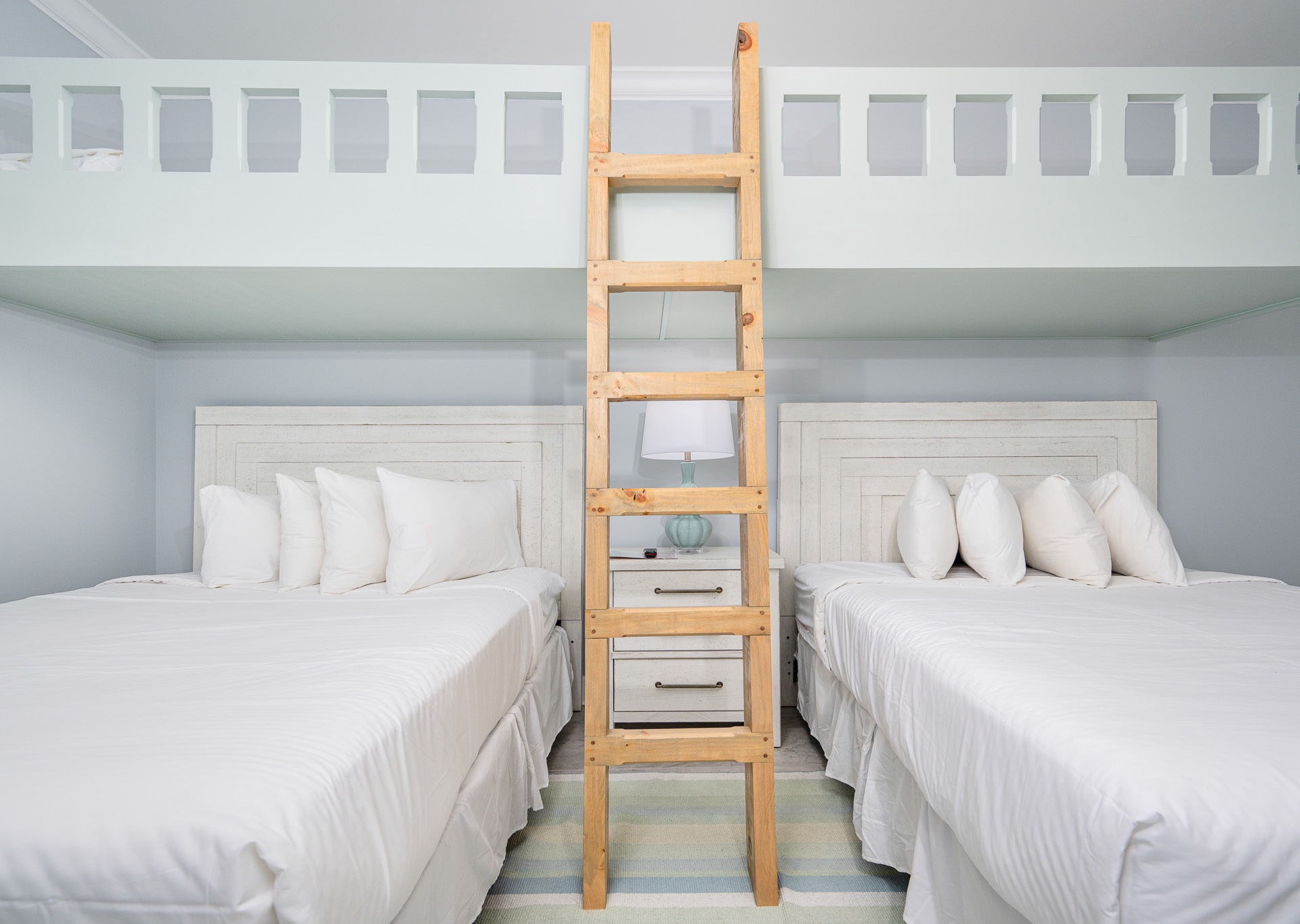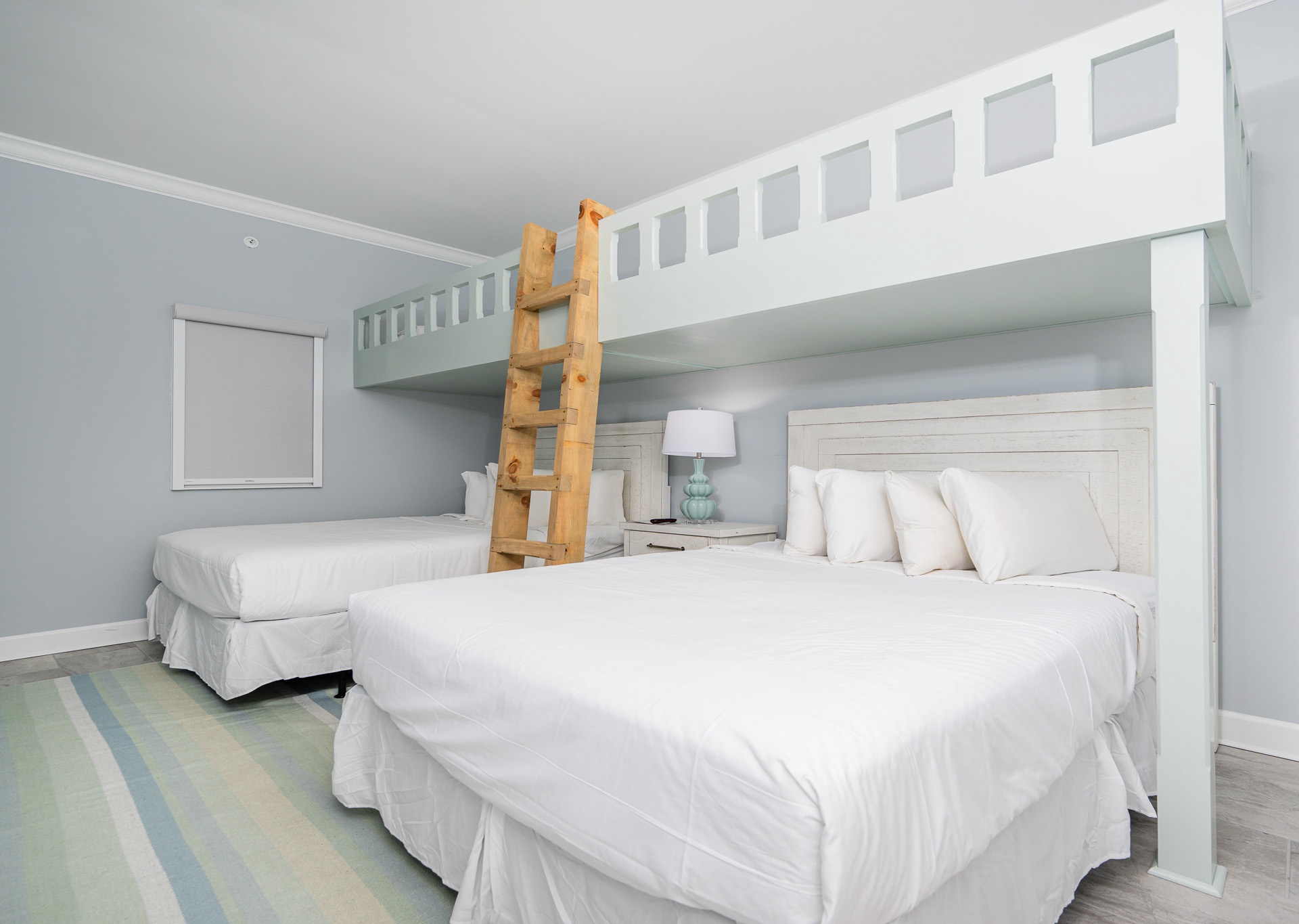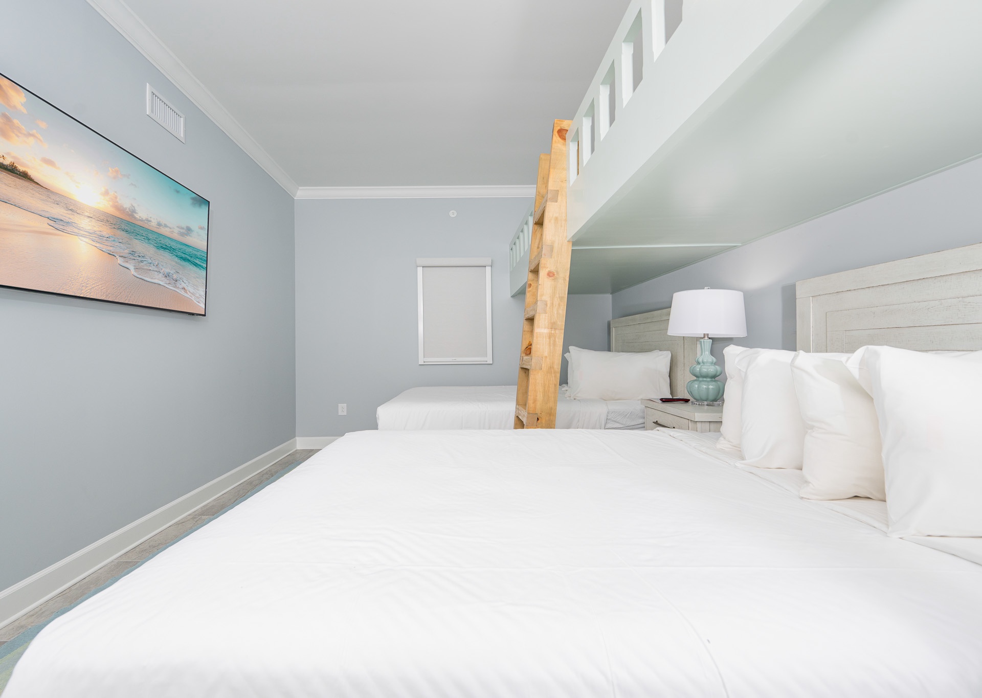 • Fourth Bedroom – Two queen beds plus built-in twin bunk beds, with nearby access to a walk-in shower.