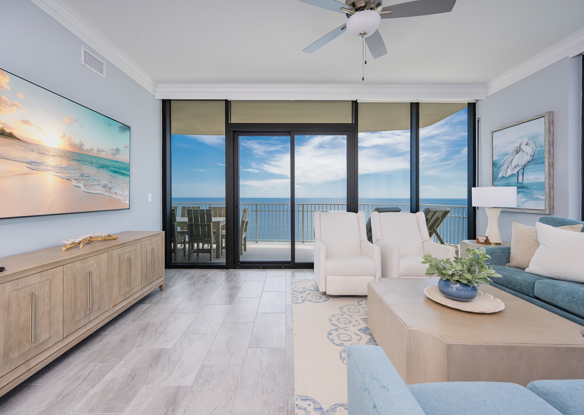 This stunning four-bedroom, four-bath corner condo sleeps up to 18 guests and offers 270° views of the Gulf of America. With floor-to-ceiling windows, modern upgrades, and a spacious layout, it’s the perfect retreat for large families or groups.