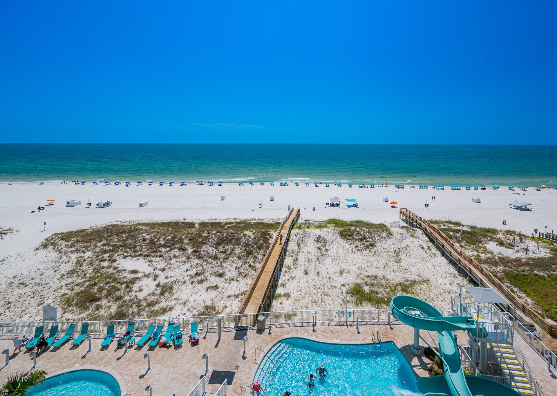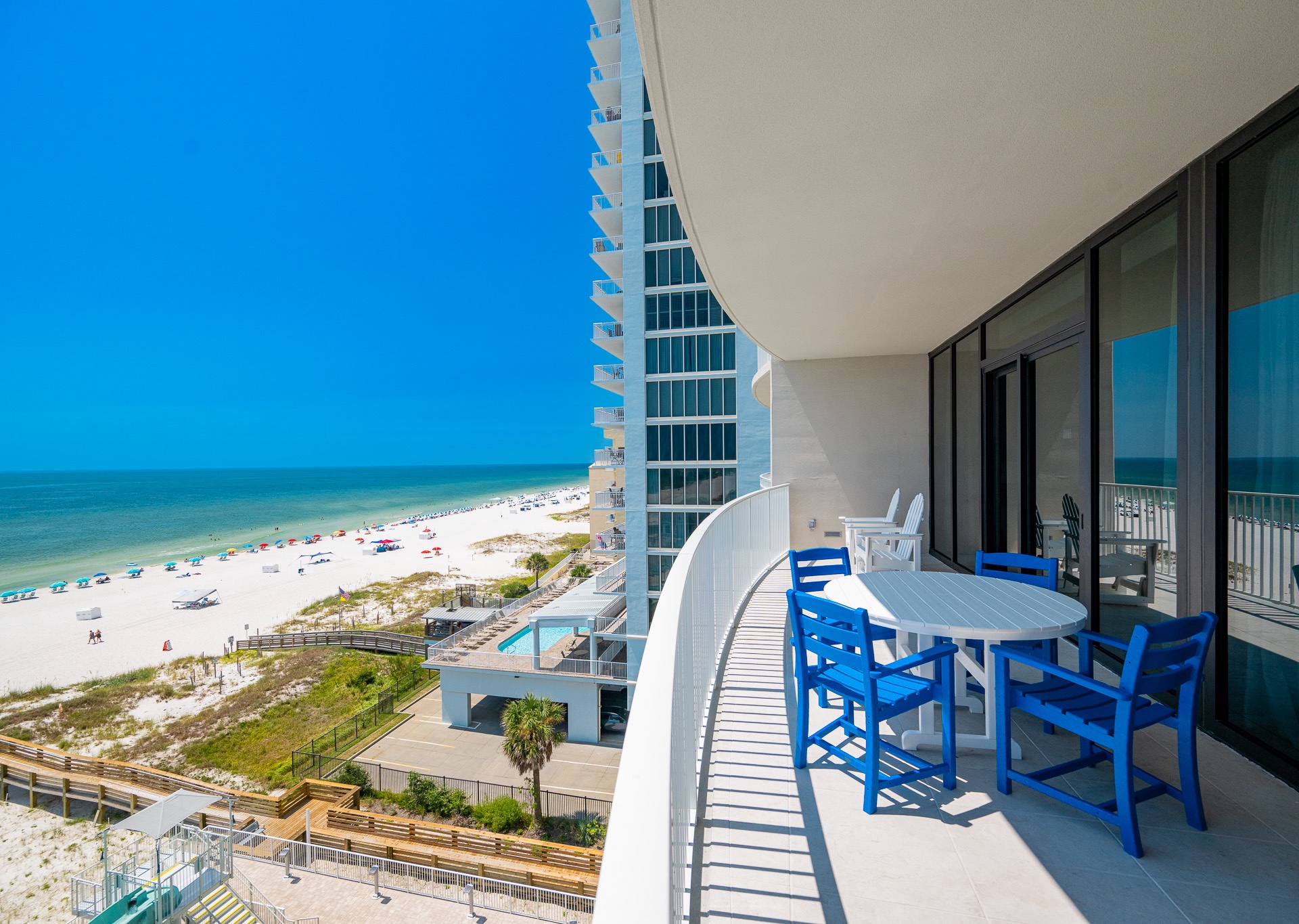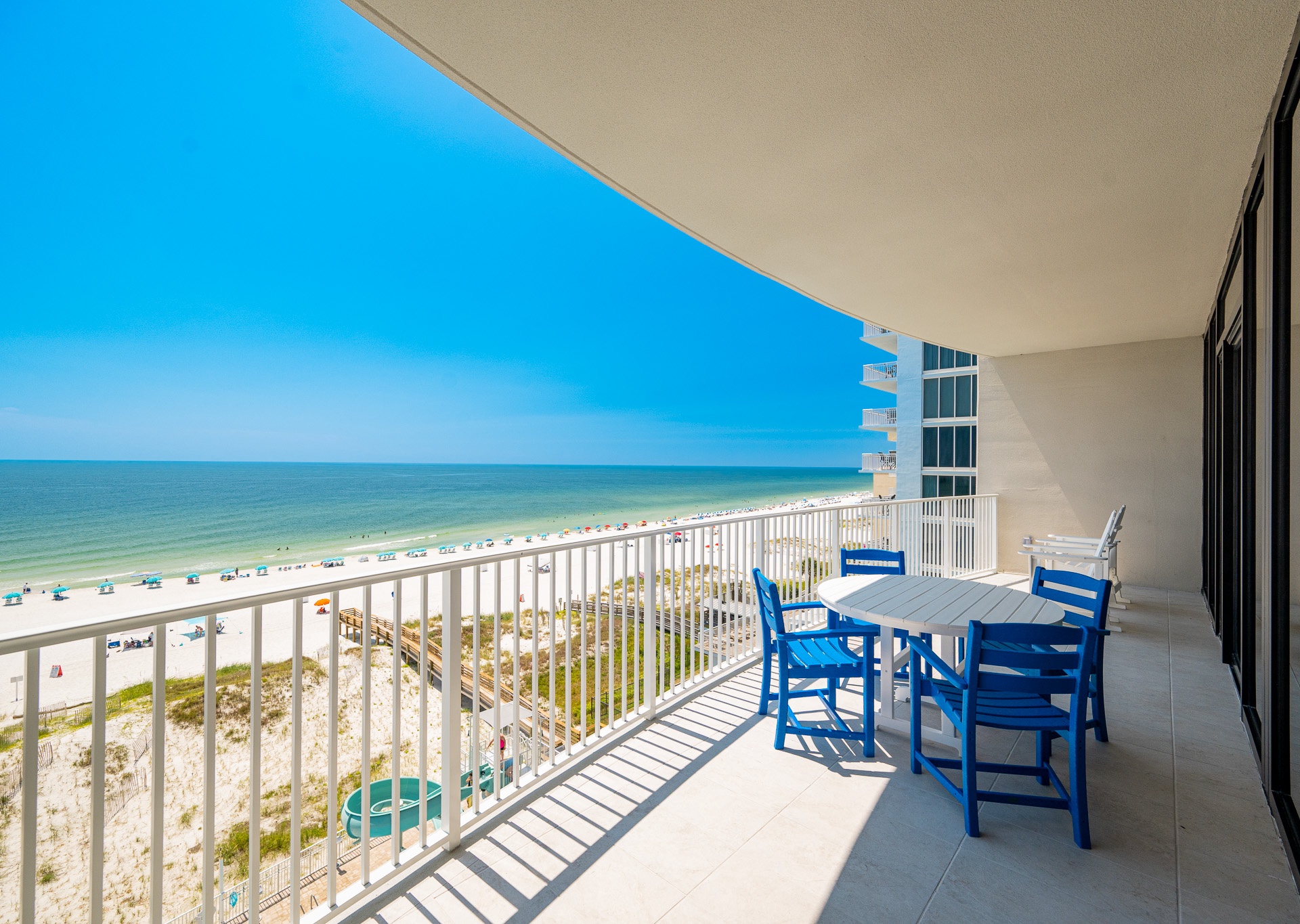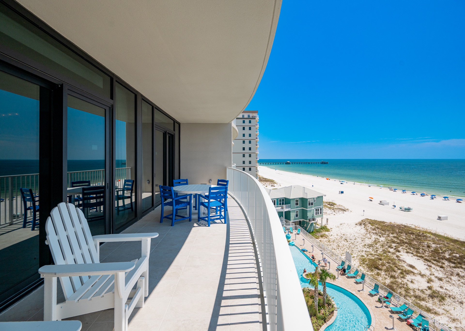 Phoenix Gulf Shores II features spacious 3- and 4-bedroom condos with open layouts and private balconies overlooking the Gulf.
