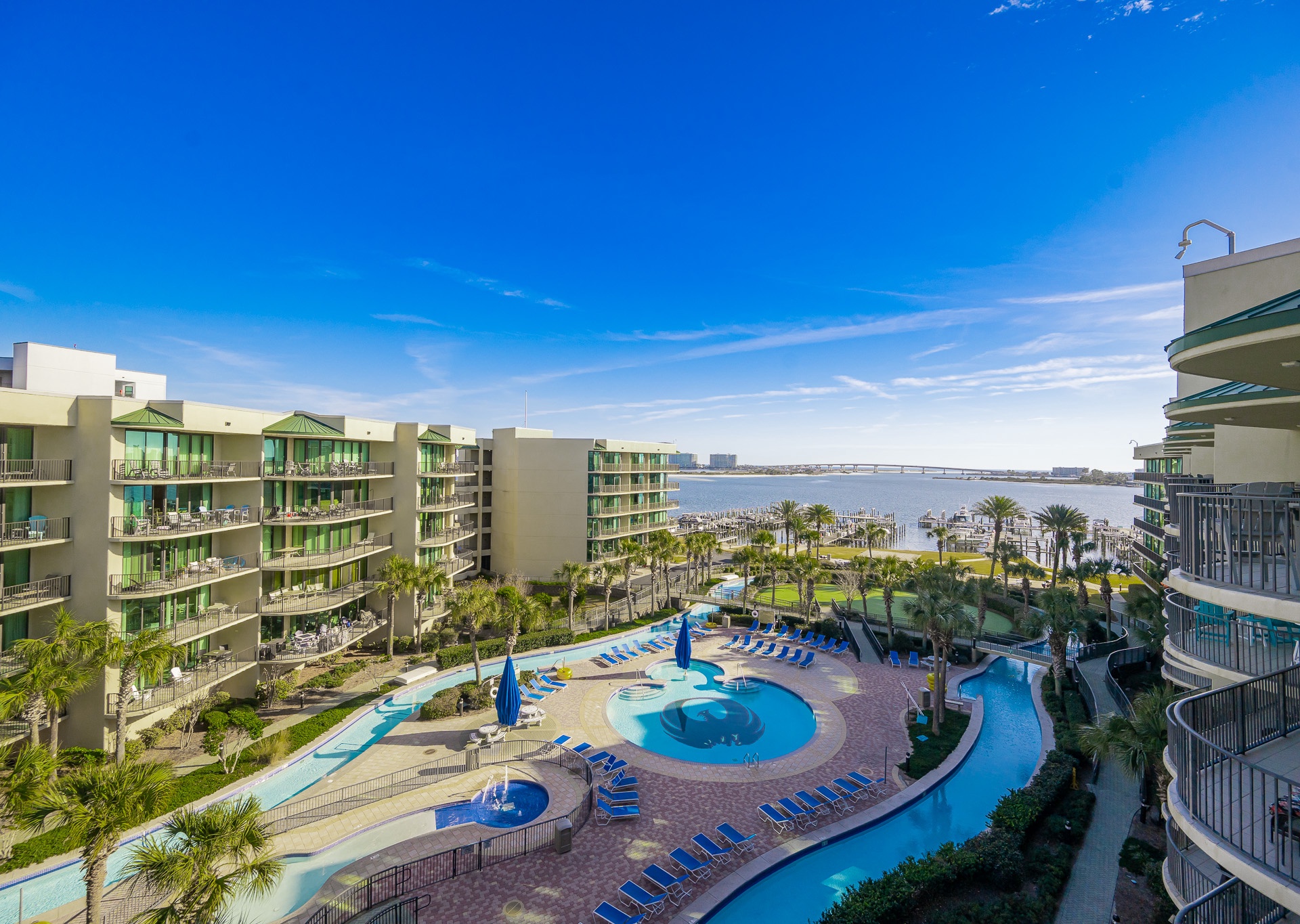 Yes, all Phoenix on the Bay vacation rentals have views of Terry Cove, Robinson Island, and Perdido Pass from private balconies.