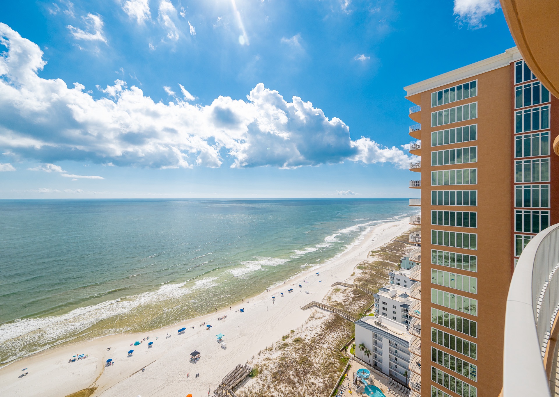 Phoenix Gulf Towers features several luxury amenities including: indoor and outdoor pools, water slide, splash pad, hot tubs, fitness center, covered parking and barbeque grills.