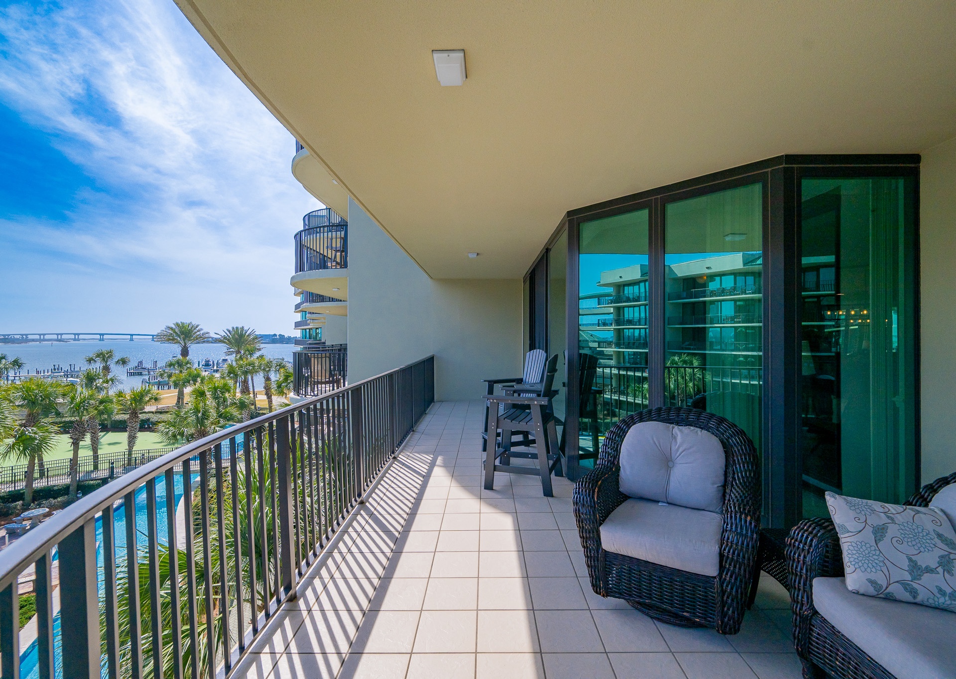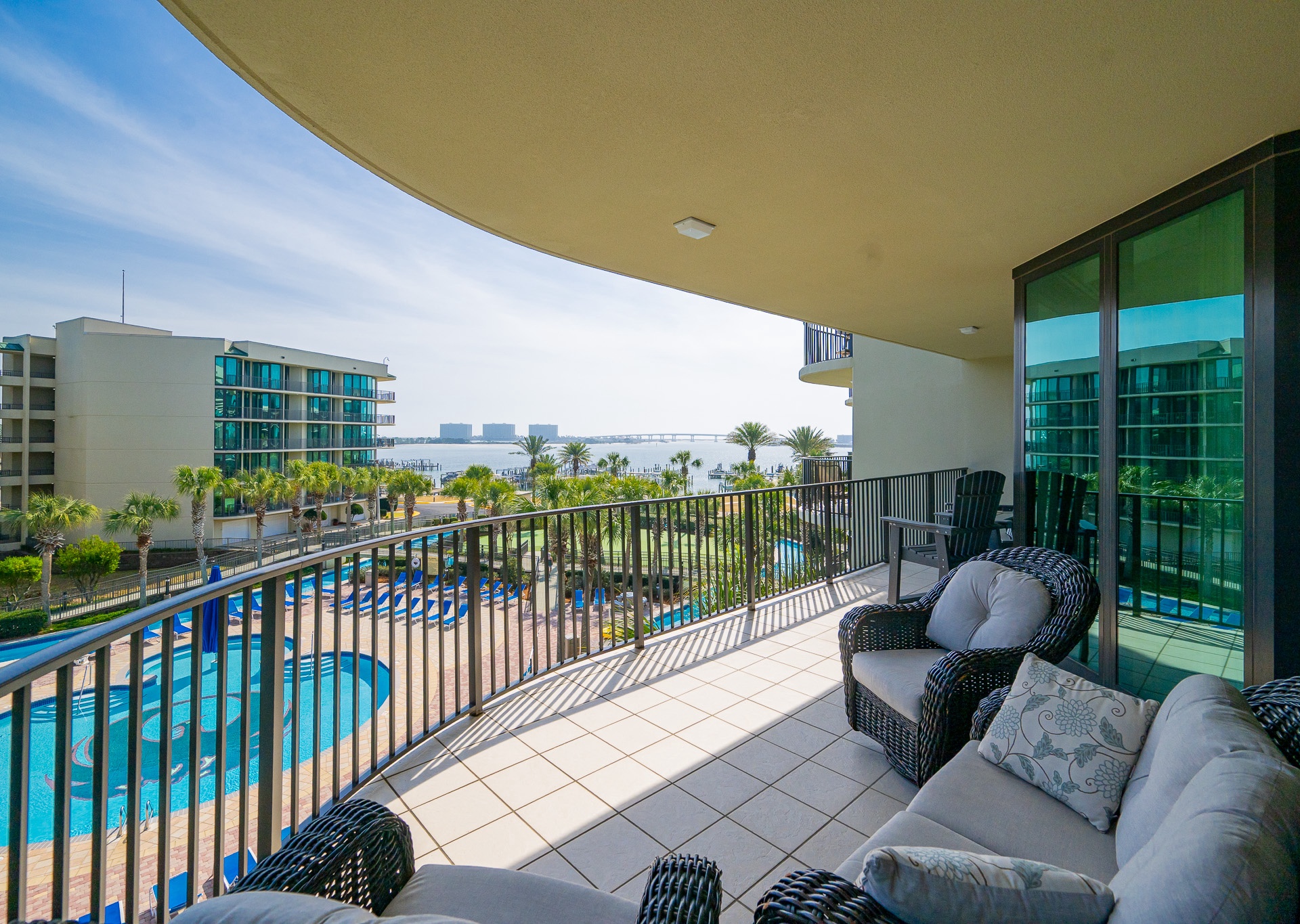 Yes, all Phoenix on the Bay vacation rentals have views of Terry Cove, Robinson Island, and Perdido Pass from private balconies.