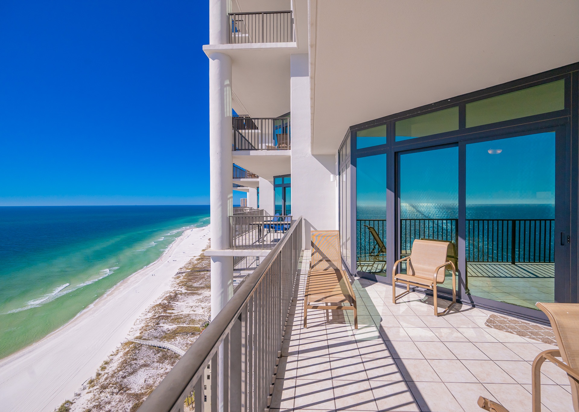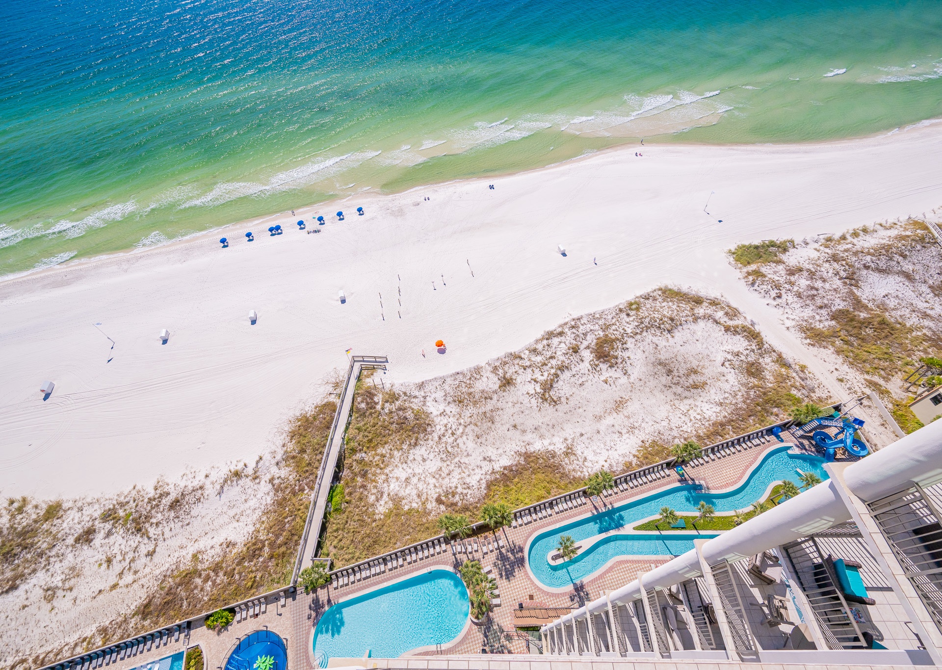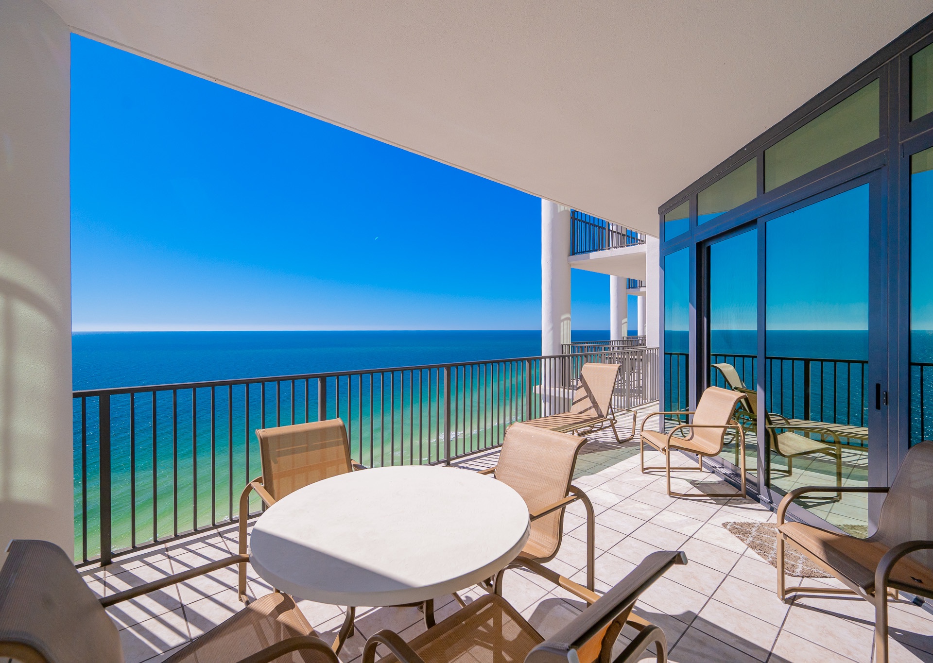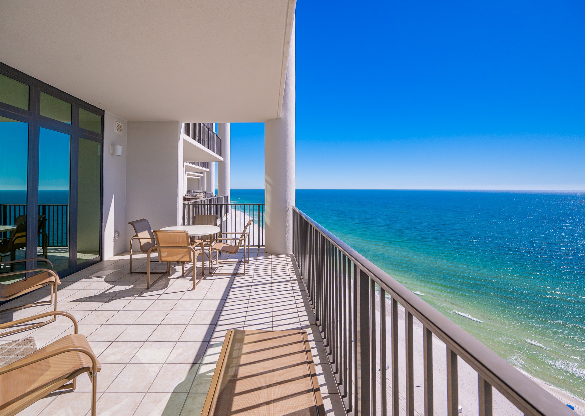 Most units at The Oasis offer private balconies with beautiful Gulf views. However, please note that some units face north and do not overlook the Gulf. We recommend reviewing the unit details carefully or contacting our team for assistance in selecting a unit that fits your preferred view.