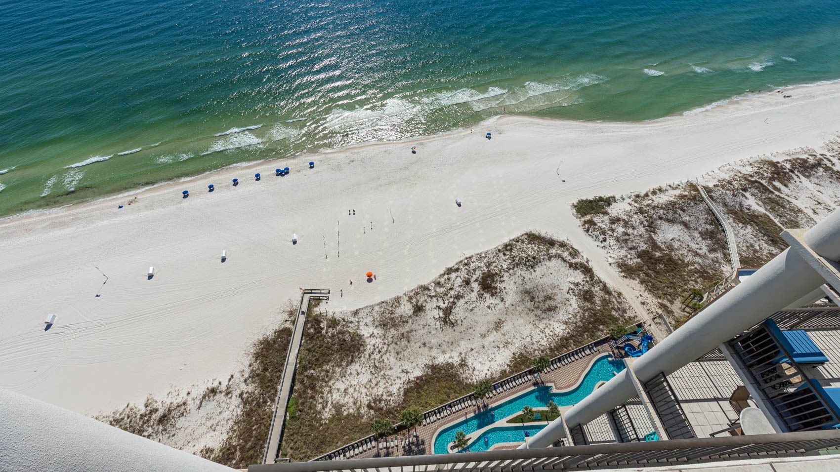 Most units at The Oasis offer private balconies with beautiful Gulf views. However, please note that some units face north and do not overlook the Gulf. We recommend reviewing the unit details carefully or contacting our team for assistance in selecting a unit that fits your preferred view.