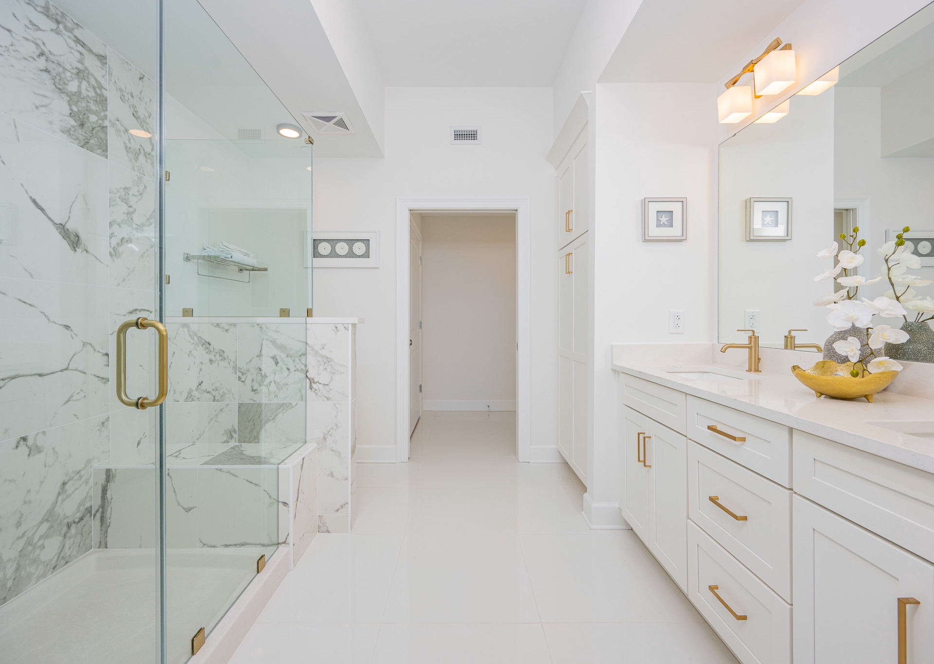 - Living areas with floor-to-ceiling windows, 10-foot smooth ceilings, large tile flooring, and crown molding.