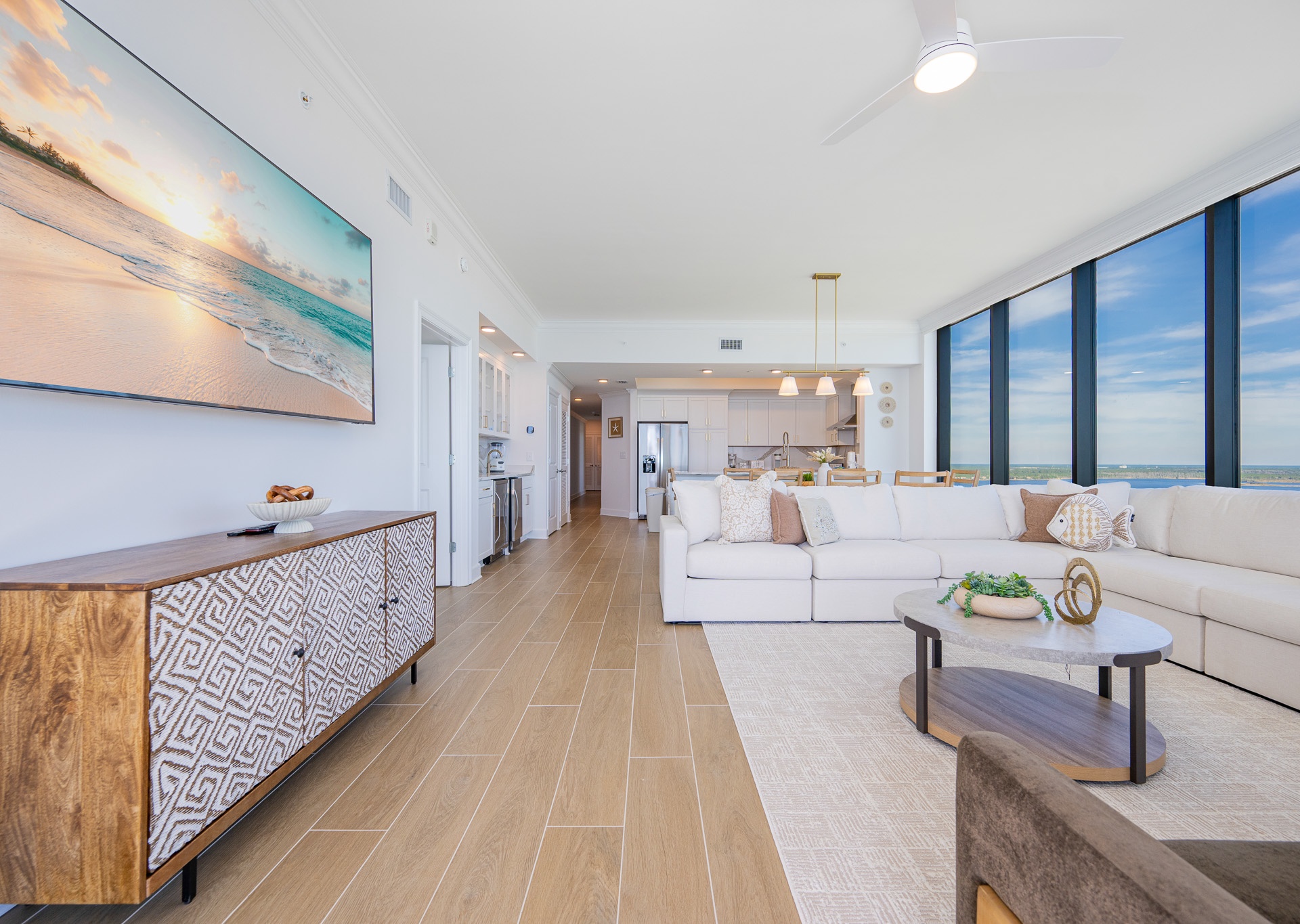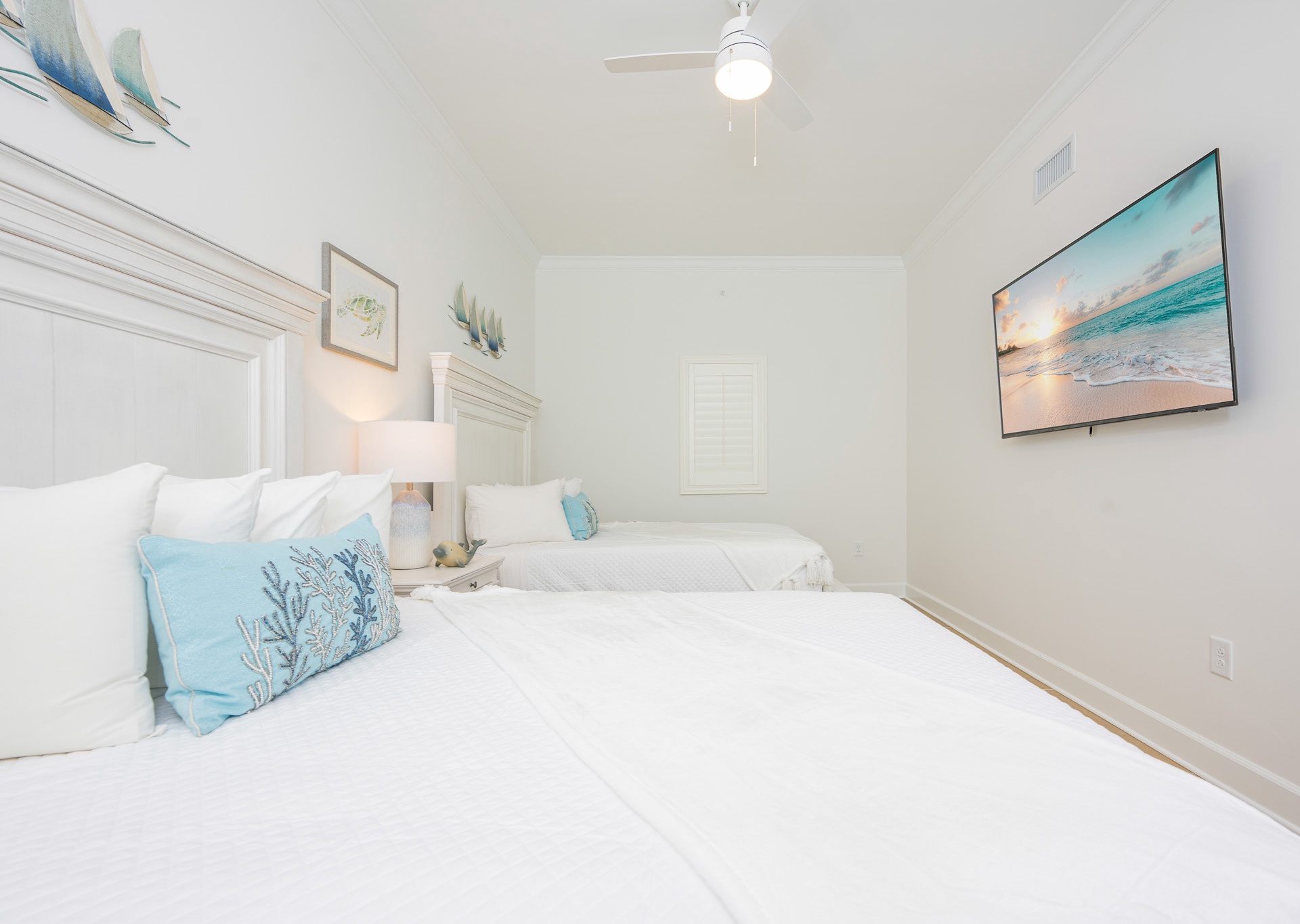 Flatscreen TVs are located throughout the condo, and every detail has been carefully considered. From the elegant finishes to the thoughtful extras, the owner has truly thought of everything, creating a luxurious yet comfortable space that feels like a high-end coastal retreat.