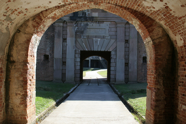 Dauphin Island, located just outside of Mobile Bay, is a short drive from Gulf Shores with views of the water and a ferry ride included. Dauphin Island is home to two famous forts, Fort Morgan and Fort Gaines. Fort Morgan has been called the "finest example of military architecture in the New World" and was originally constructed as Fort Bowyer during the War of 1812. Fort Gaines was built in 1821 and was used during the famous Battle of Mobile Bay of the Civil War. Dauphine Island has seen many battles, and was also used as a location for U.S. military training during WWI and WWII.