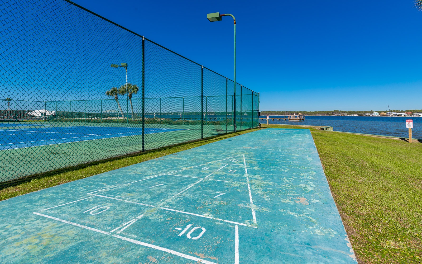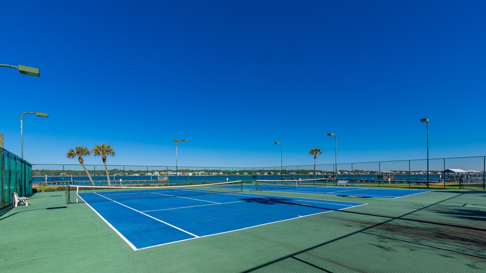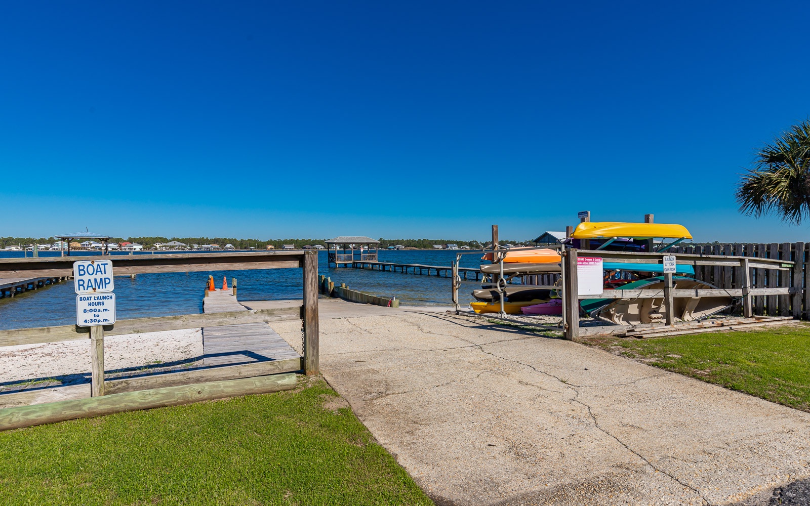 Two piers and a boat launch make it easy to get out on the water with kayaks or small boats at Gulf Shores Surf & Racquet Club. And when you return from the bay, you can get a grill going in the picnic area, then head across the street to the gazebo and boardwalk for access to the sugar-white sand of the Gulf.