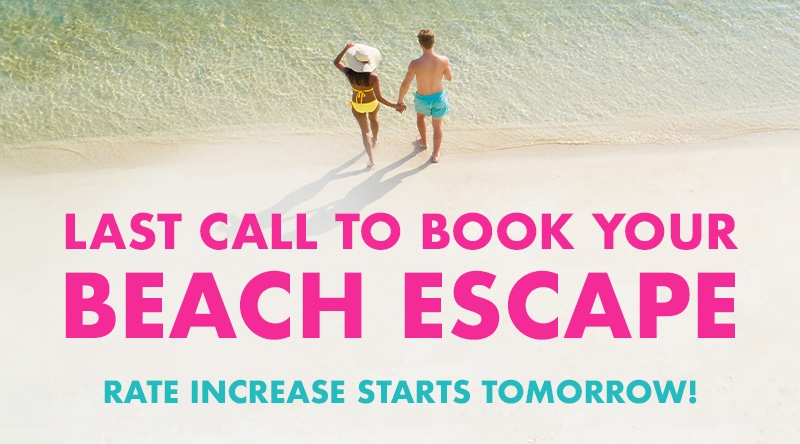 Book your July getaway before rates go up! Secure a great deal before the increase in our July rates TOMORROW! The peak summer days are upon us, and you don’t want to miss out on the season’s inviting, soft sands and refreshing waters!