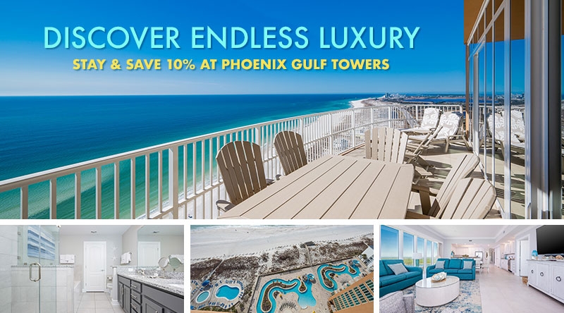 Book Your Stay at Phoenix Gulf Towers today and SAVE 10% with Brett/Robinson! Use promo code LUXURY at checkout to apply your discounted nightly rate. Reserve your condo online or Reach our Vacation Specialists at 800.211.7892 for assistance planning the ultimate beach retreat!