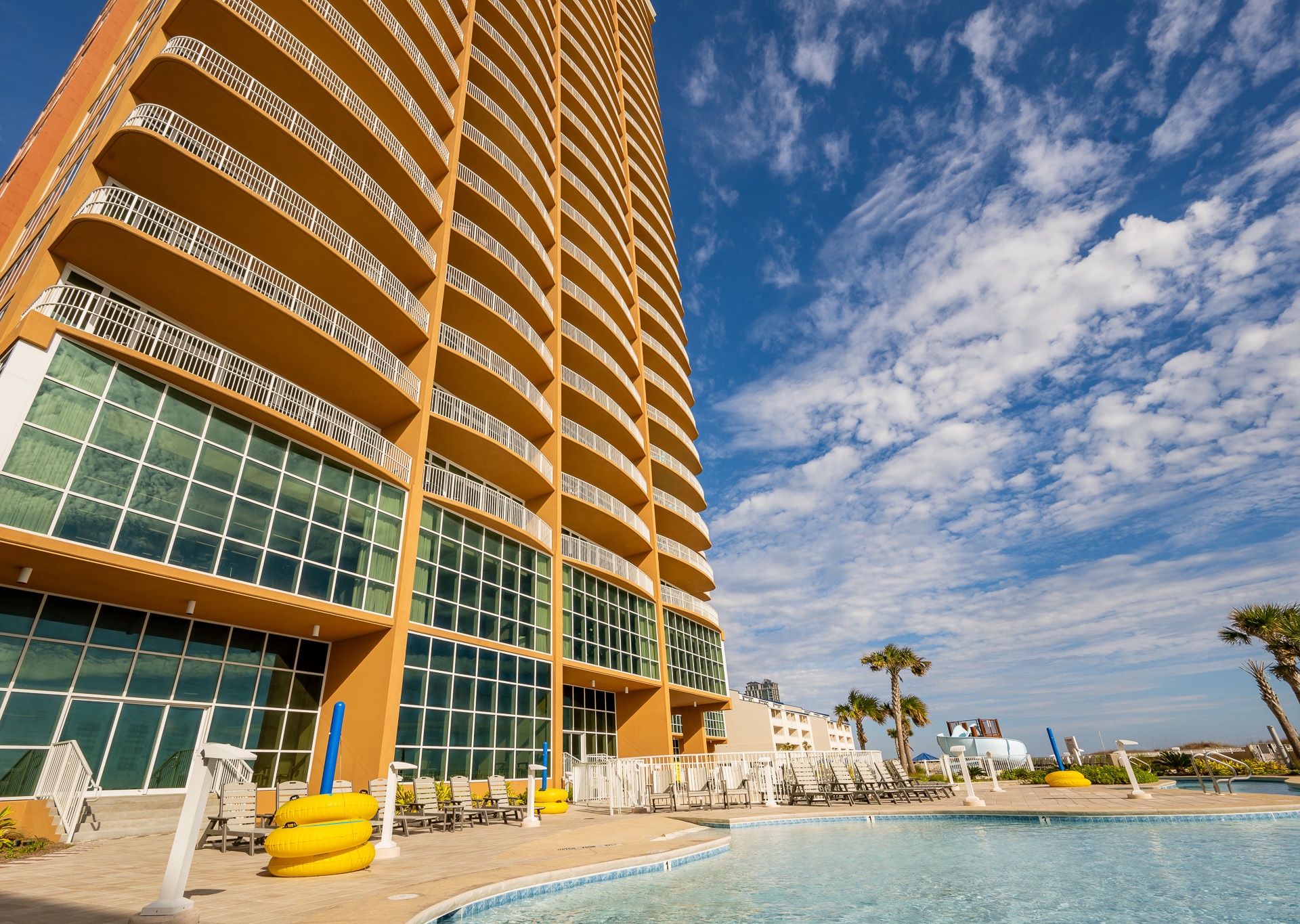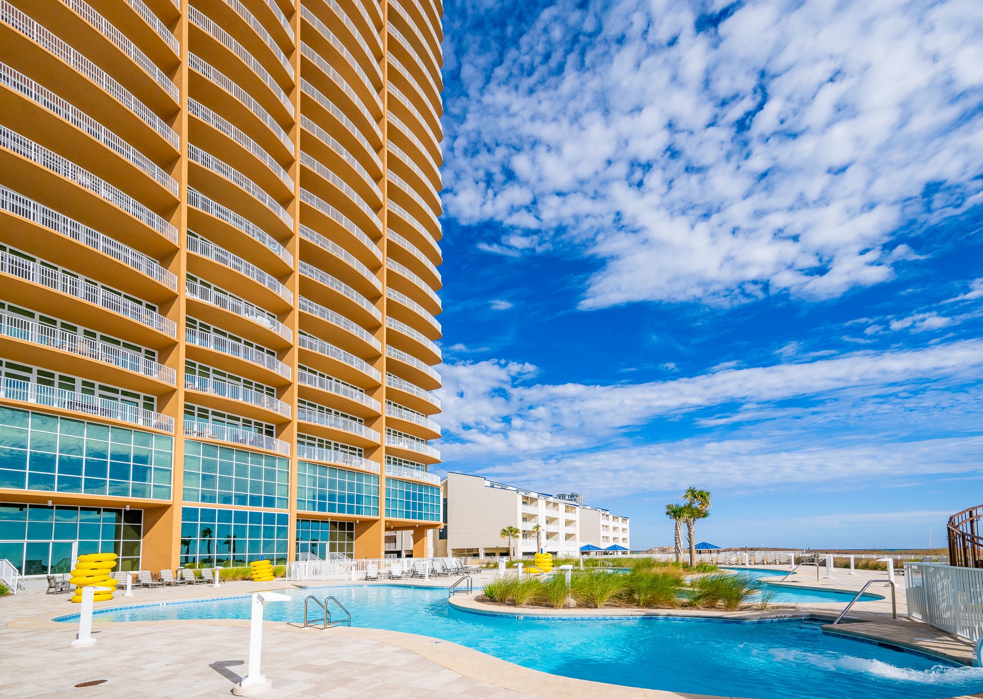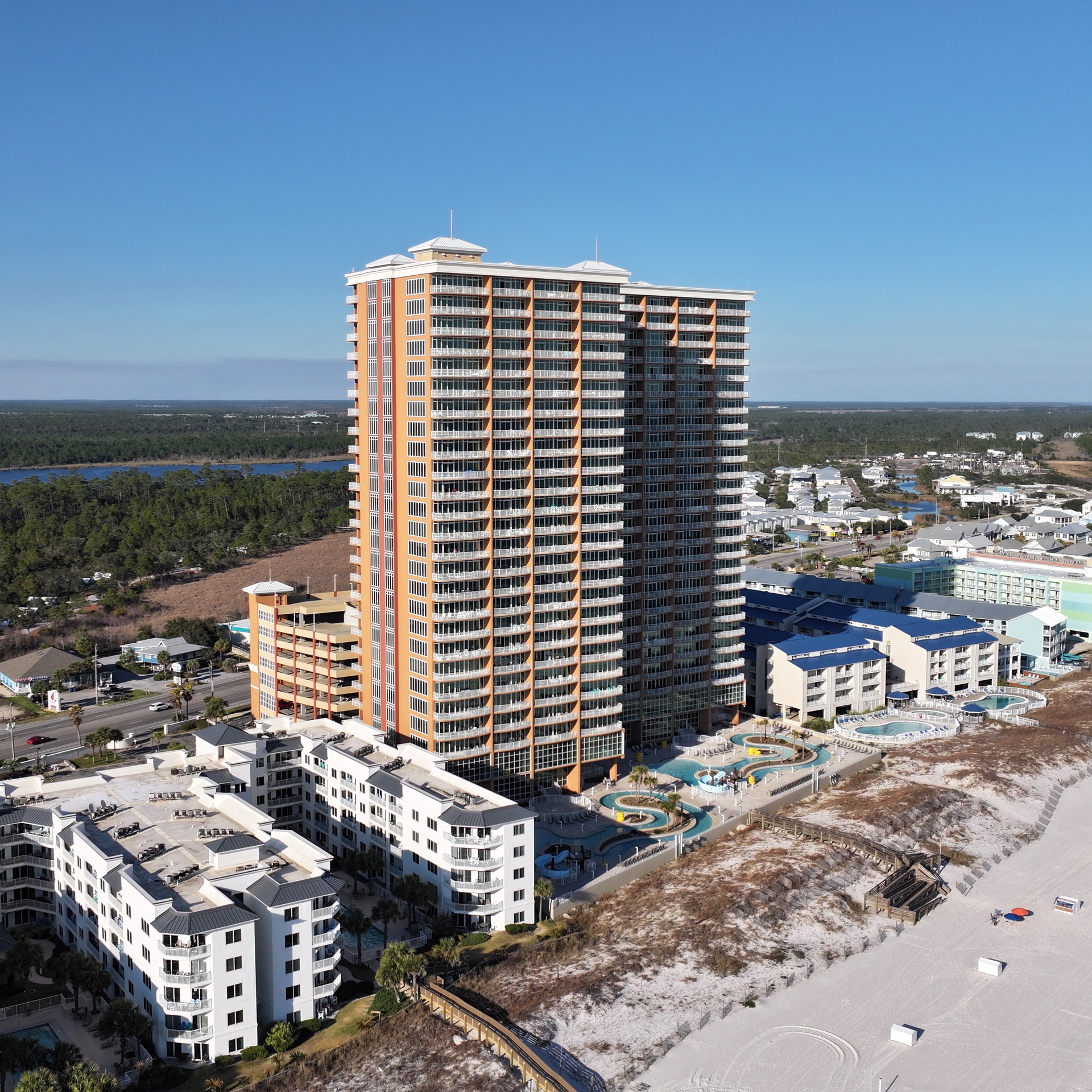 Phoenix Gulf Towers features several luxury amenities including: indoor and outdoor pools, water slide, splash pad, hot tubs, fitness center, covered parking and barbeque grills.
