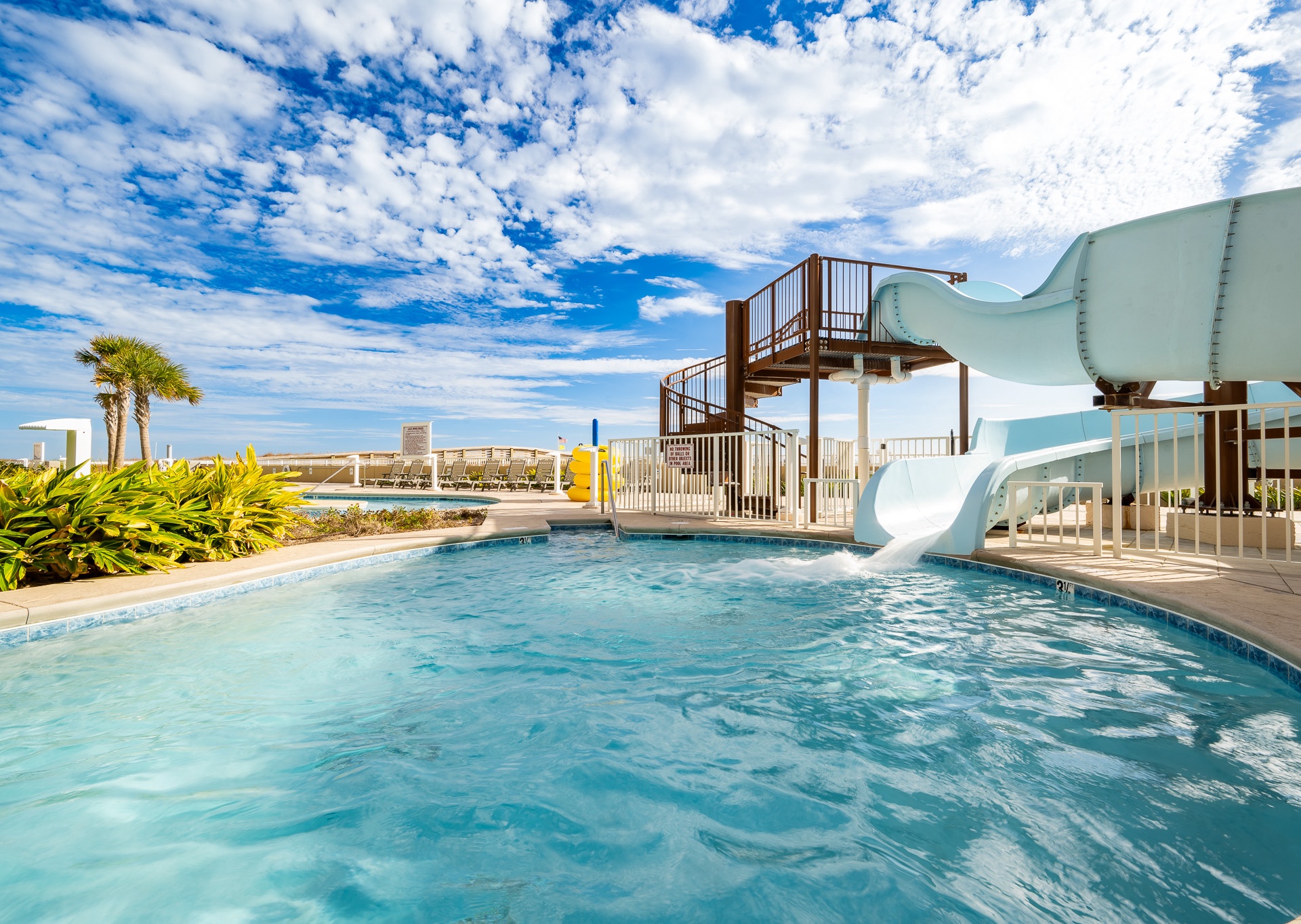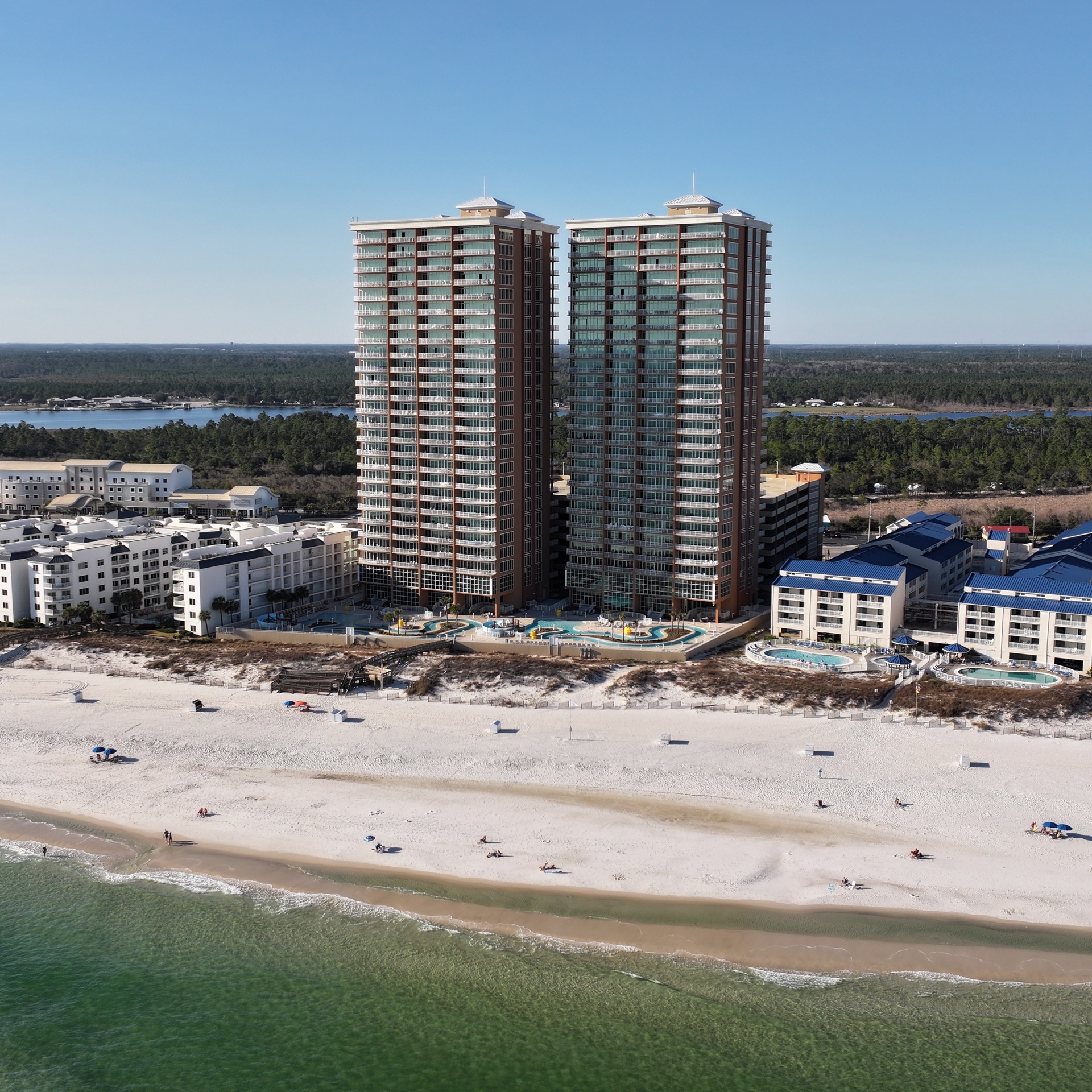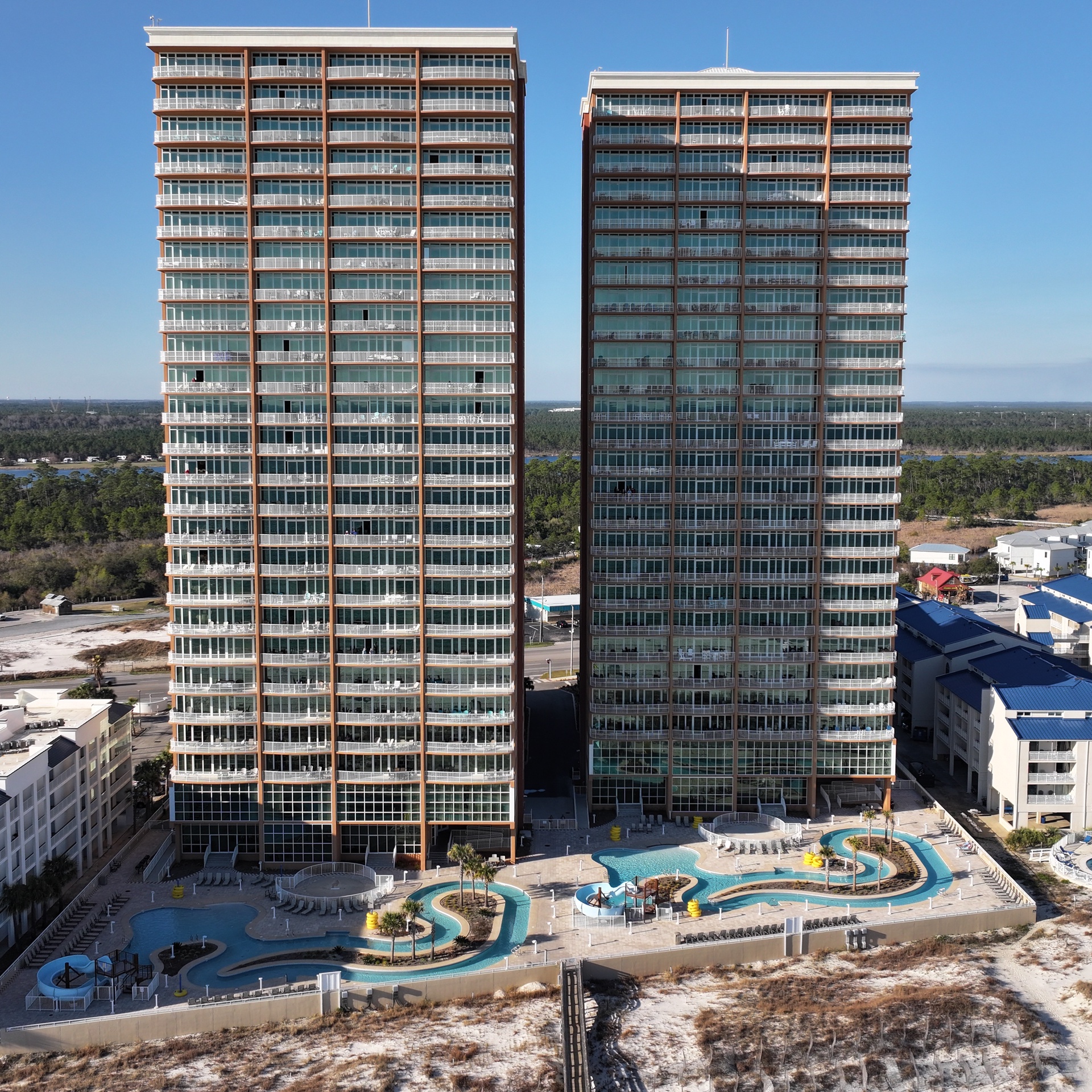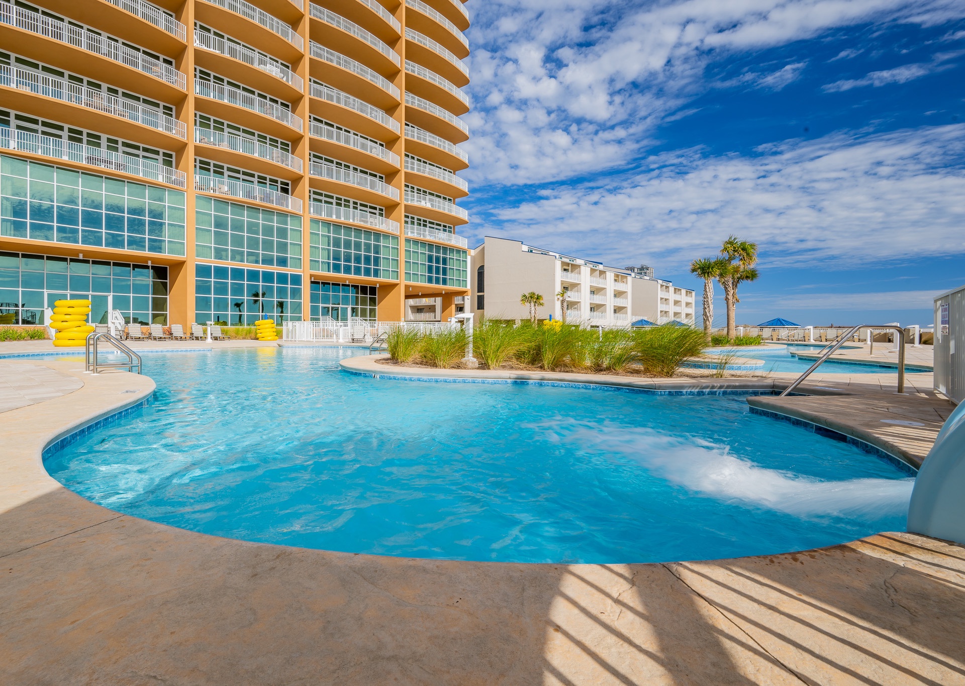 Phoenix Gulf Towers features several luxury amenities including: indoor and outdoor pools, water slide, splash pad, hot tubs, fitness center, covered parking and barbeque grills.