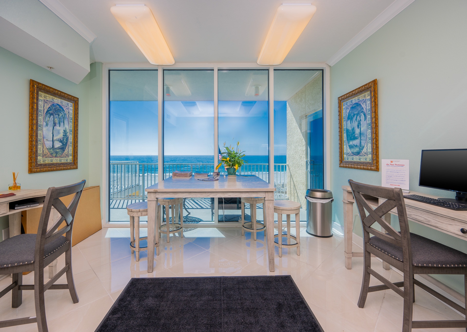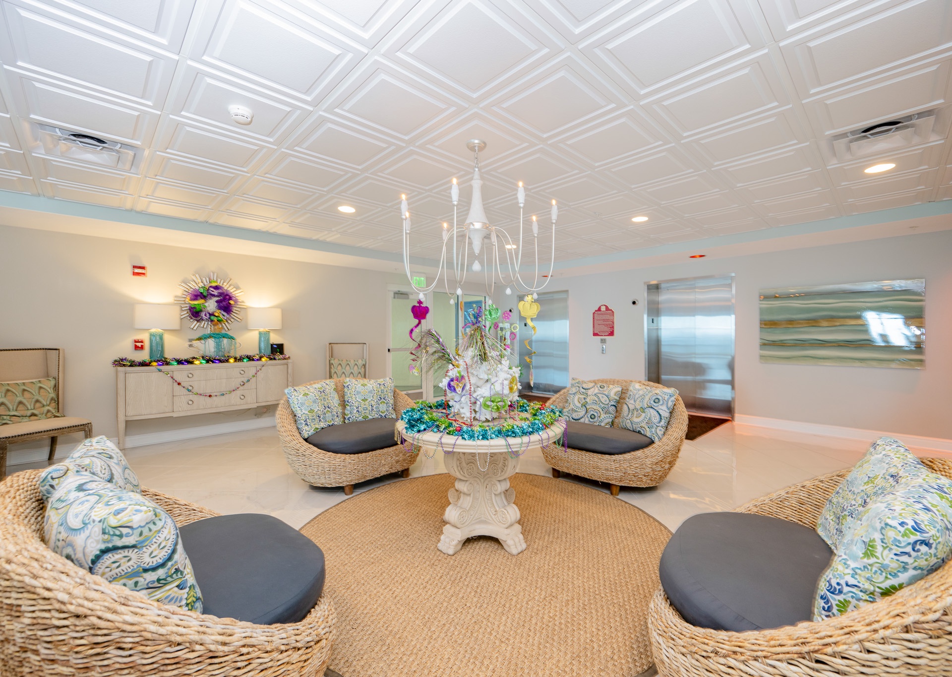 In addition to the sugar-white sands of Gulf Shores, the San Carlos complex features a zero-entry outdoor pool, a sauna, a grilling area, and an exercise room with a stunning view of the Gulf.