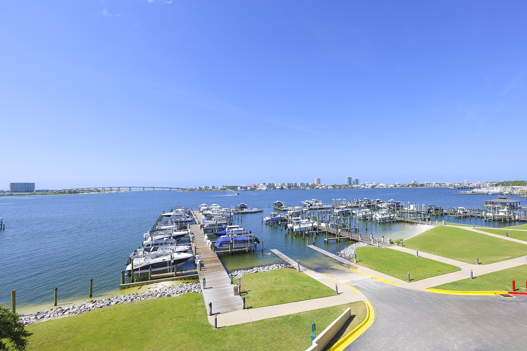 Phoenix on the Bay features several luxury amenities including: indoor and outdoor pools, kiddie pool, lazy river, slide, marina, boat slips, boat launch, sauna, steam room, hot tubs, fitness center, putting green, tennis court, pickleball court, basketball, covered parking, and barbeque grills.