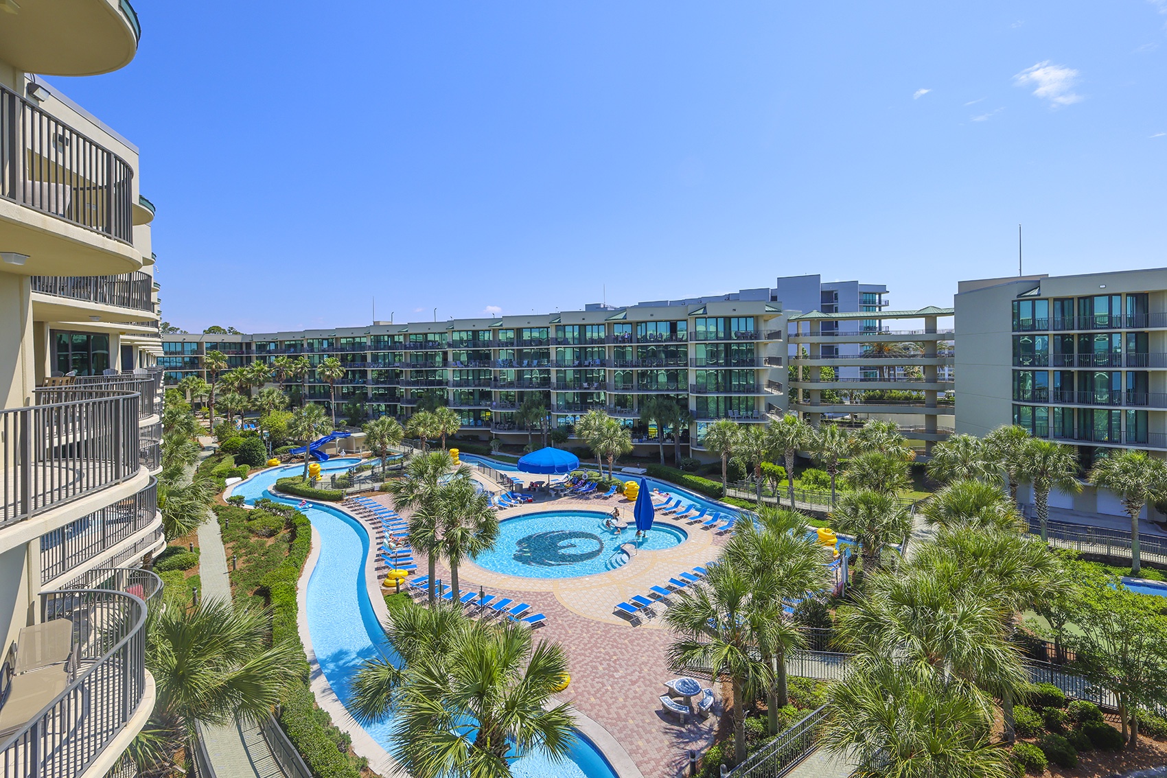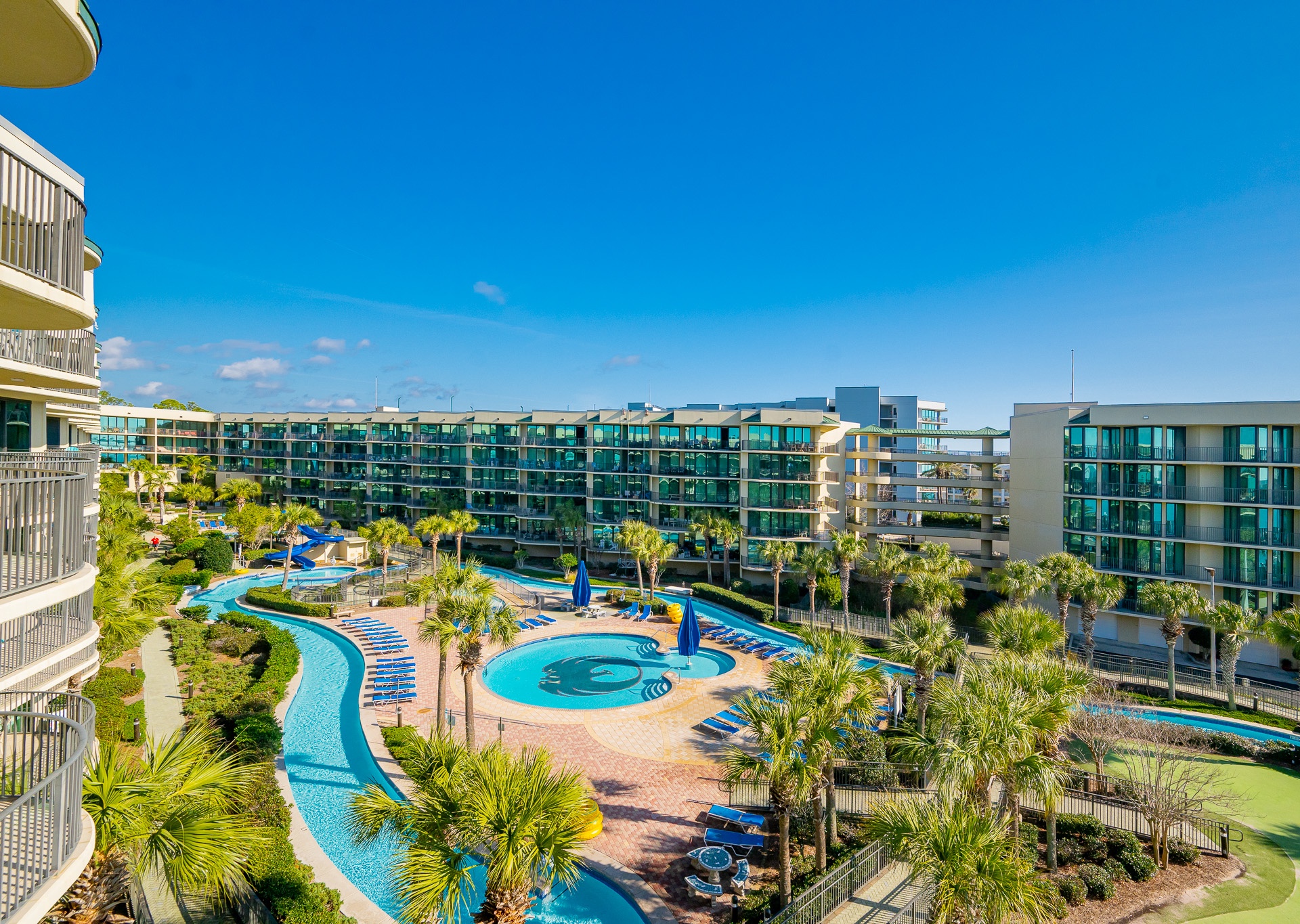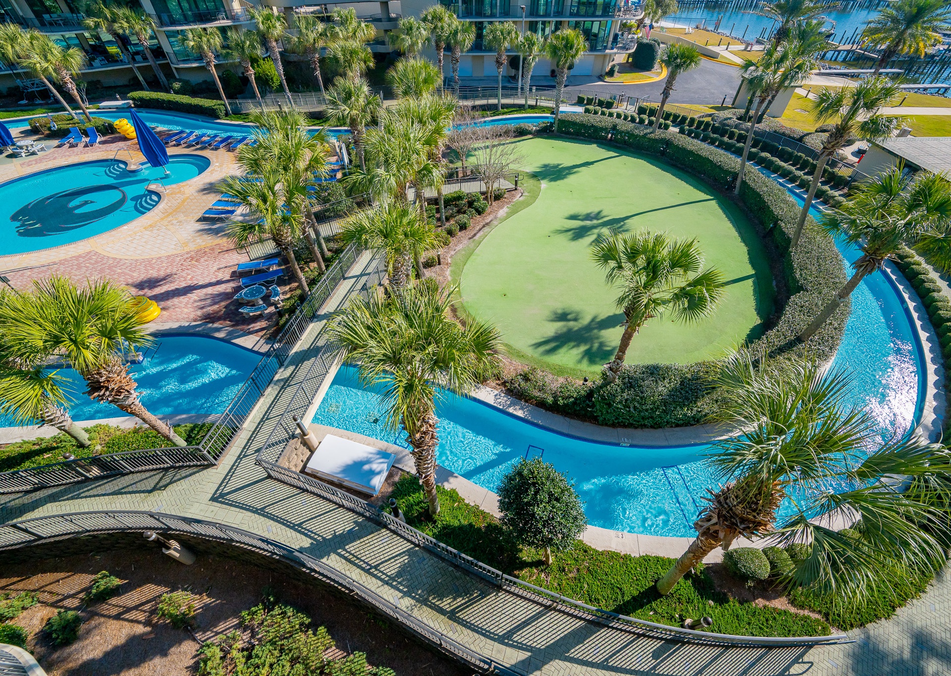 Phoenix on the Bay features several luxury amenities including: indoor and outdoor pools, kiddie pool, lazy river, slide, marina, boat slips, boat launch, sauna, steam room, hot tubs, fitness center, putting green, tennis court, pickleball court, basketball, covered parking, and barbeque grills.