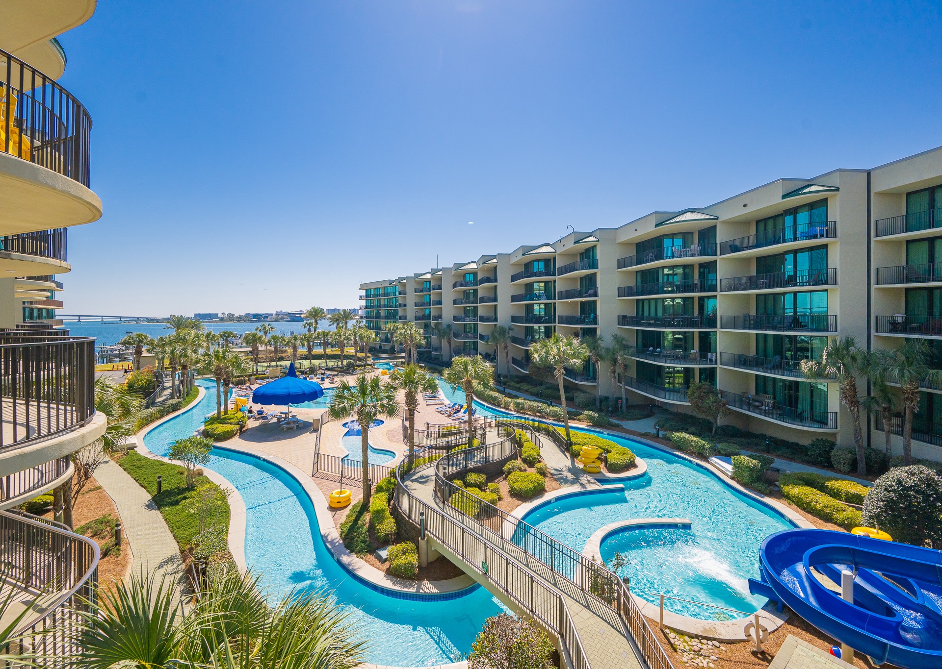 Phoenix on the Bay features several luxury amenities including: indoor and outdoor pools, kiddie pool, lazy river, slide, marina, boat slips, boat launch, sauna, steam room, hot tubs, fitness center, putting green, tennis court, pickleball court, basketball, covered parking, and barbeque grills.