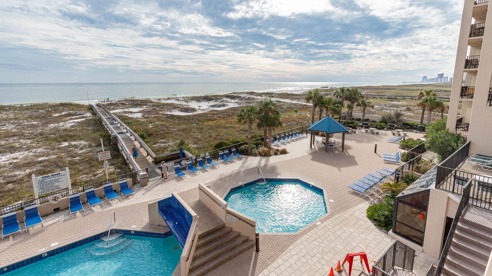 Yes, you’ll enjoy direct beach access at Phoenix East along with beach chair rentals for guests.