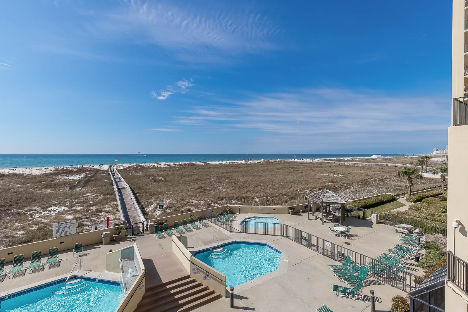 Phoenix VII Orange Beach is equipped with accessibility features to ensure that guests can enjoy their stay. The resort has accessible entrances and public areas, including ramps and elevators. The units were also originally designed with accessibility in mind. Contact us at 1-800-211-7892 to discuss accommodations and options.