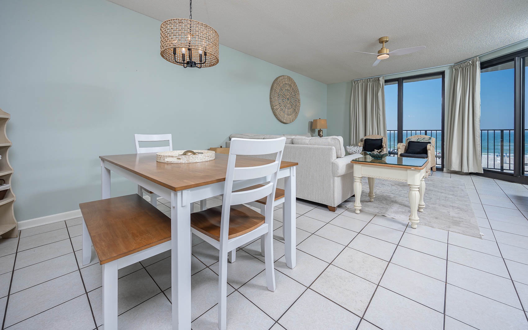 Experience the pinnacle of Gulf front living on the expansive balcony, where breathtaking views of the beach and endless horizon await. Enjoy the provided table and chairs, savoring every moment as gentle Gulf breezes caress your skin and the soothing sound of waves serenades your senses.