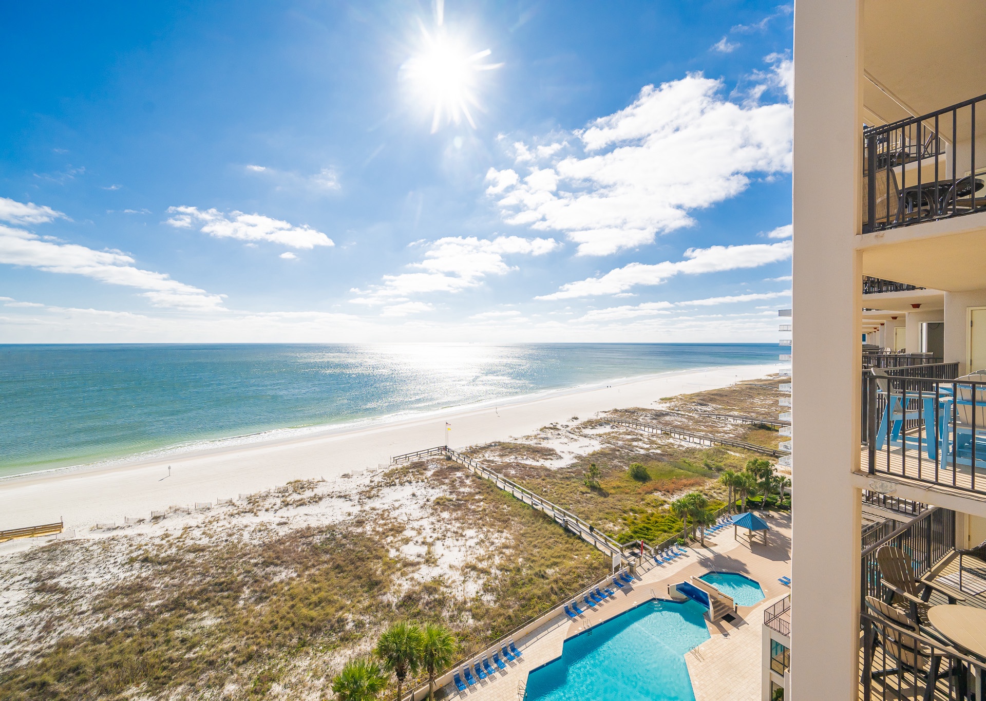 Yes, all Phoenix East units have floor-to-ceiling windows and private balconies with views of the Gulf.
