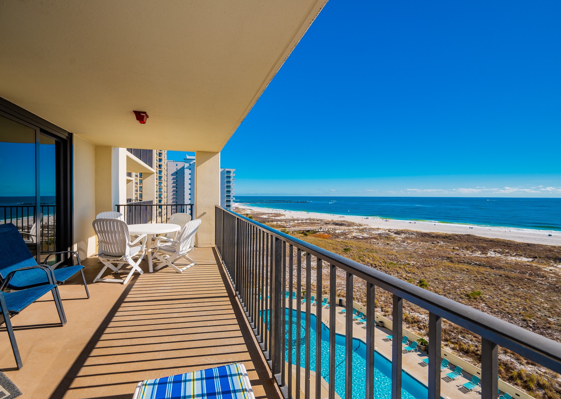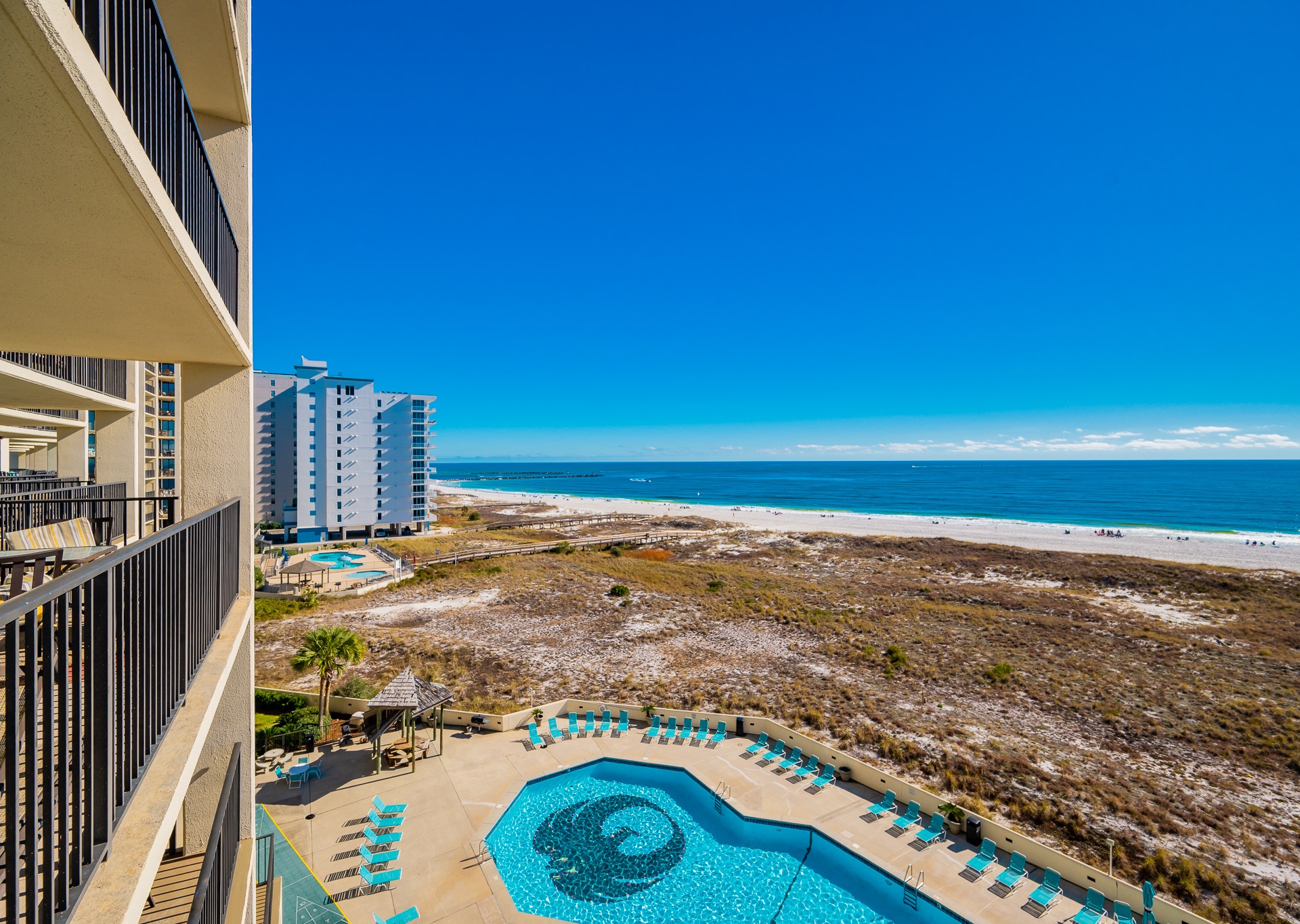 Phoenix VII Orange Beach is equipped with accessibility features to ensure that guests can enjoy their stay. The resort has accessible entrances and public areas, including ramps and elevators. The units were also originally designed with accessibility in mind. Contact us at 1-800-211-7892 to discuss accommodations and options.