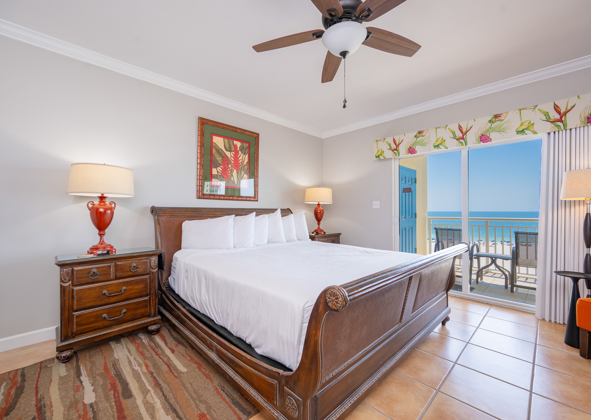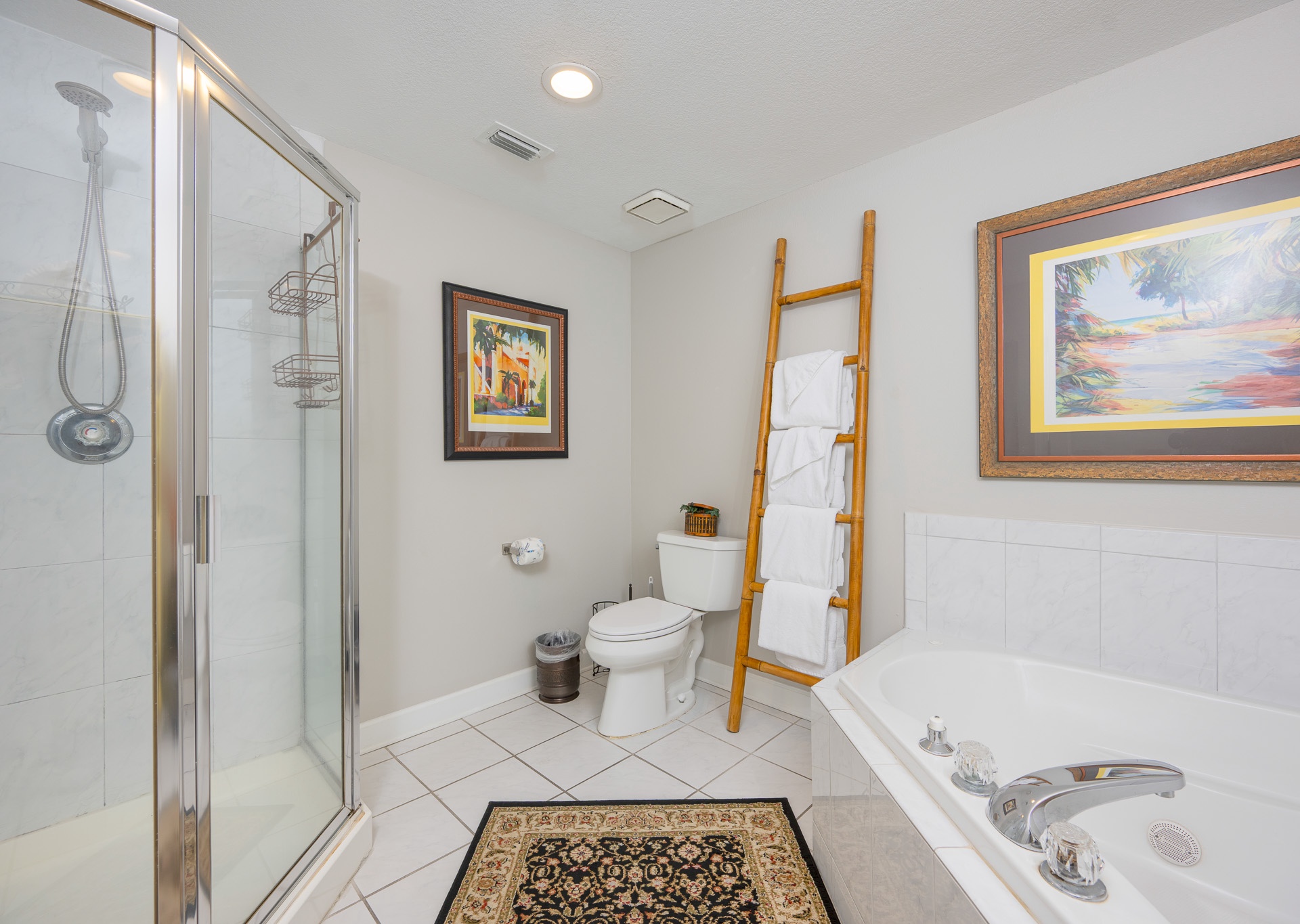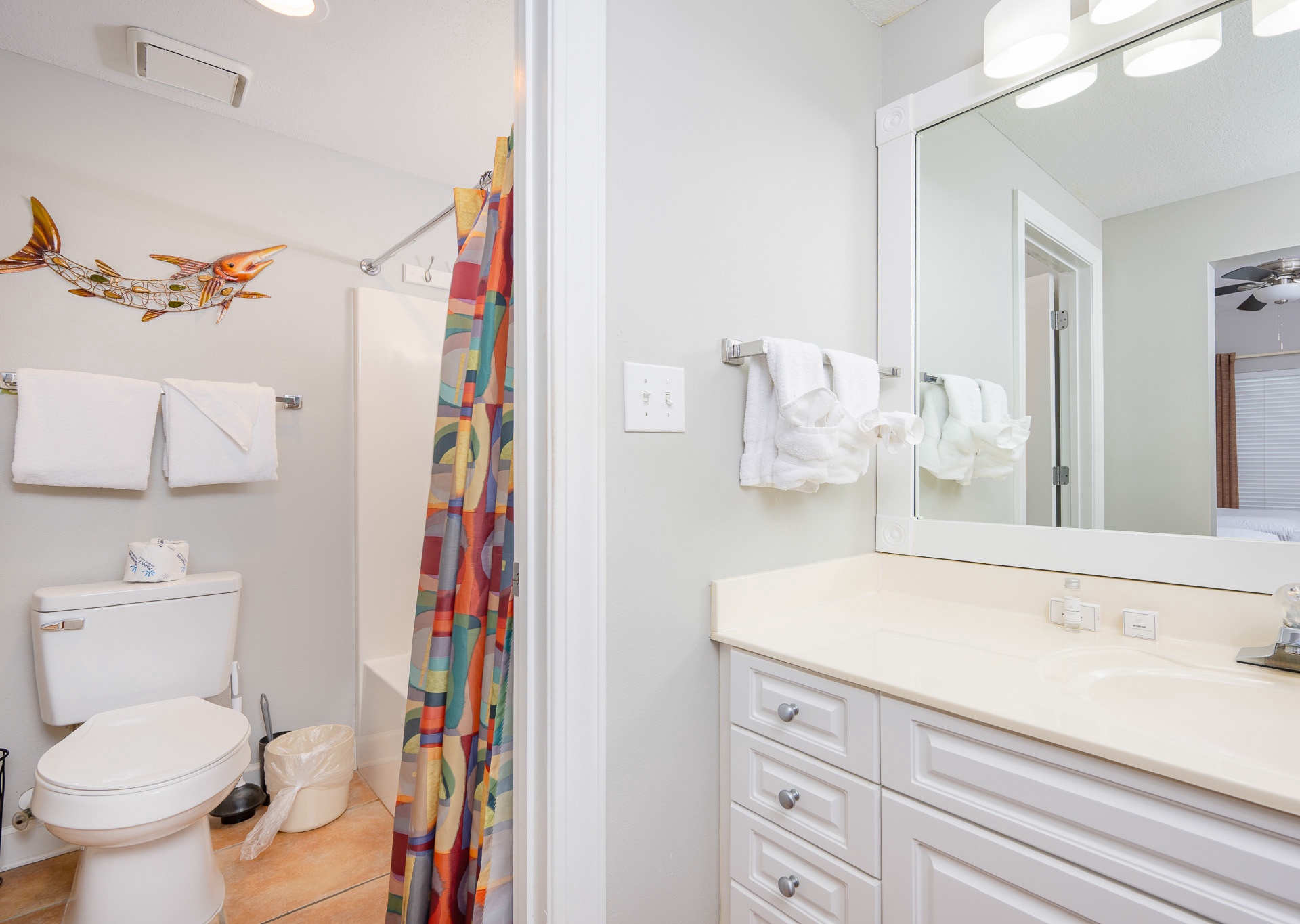• 2nd Bedroom: King bed, flat-screen TV, private bath with single vanity and tub/shower combo with private water closet