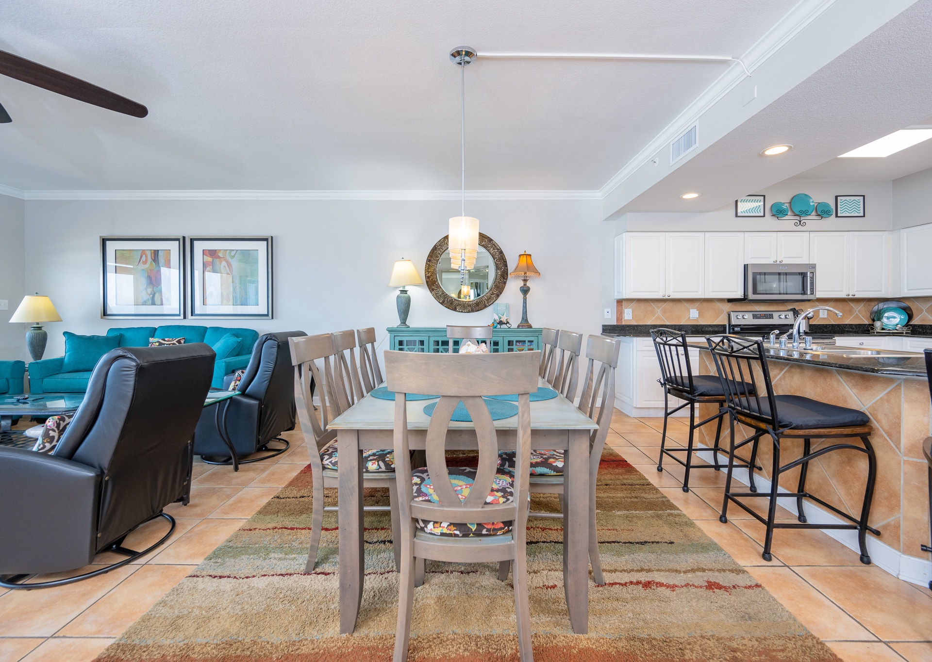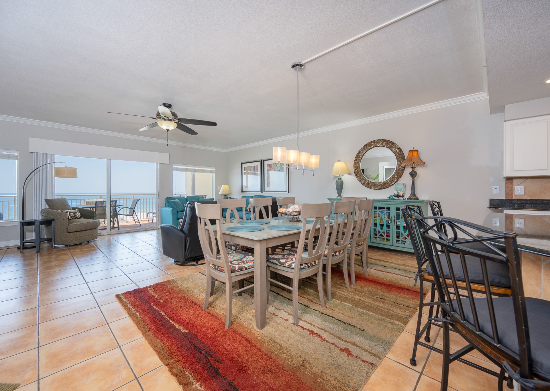 • Dining Area: Table seats 8