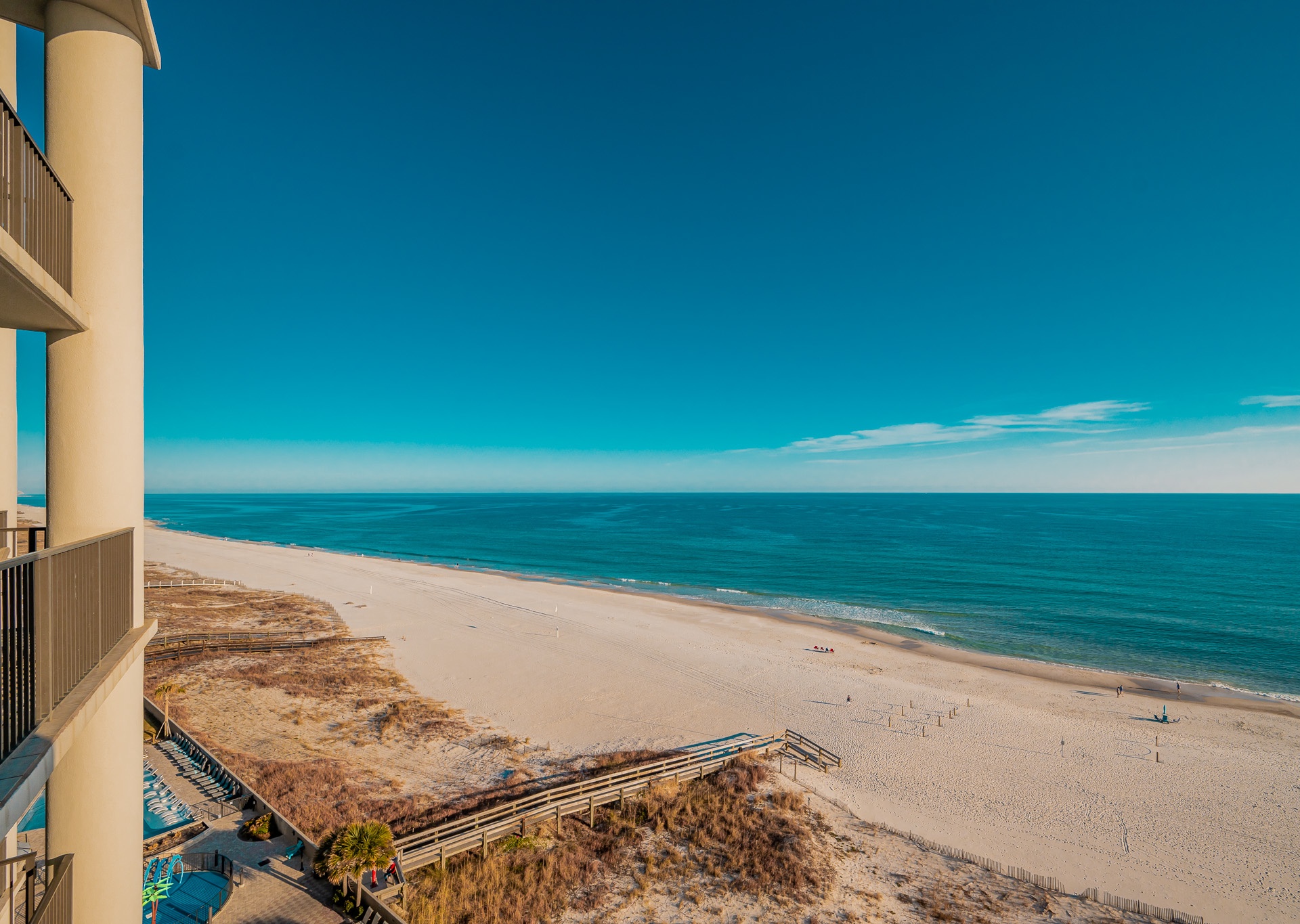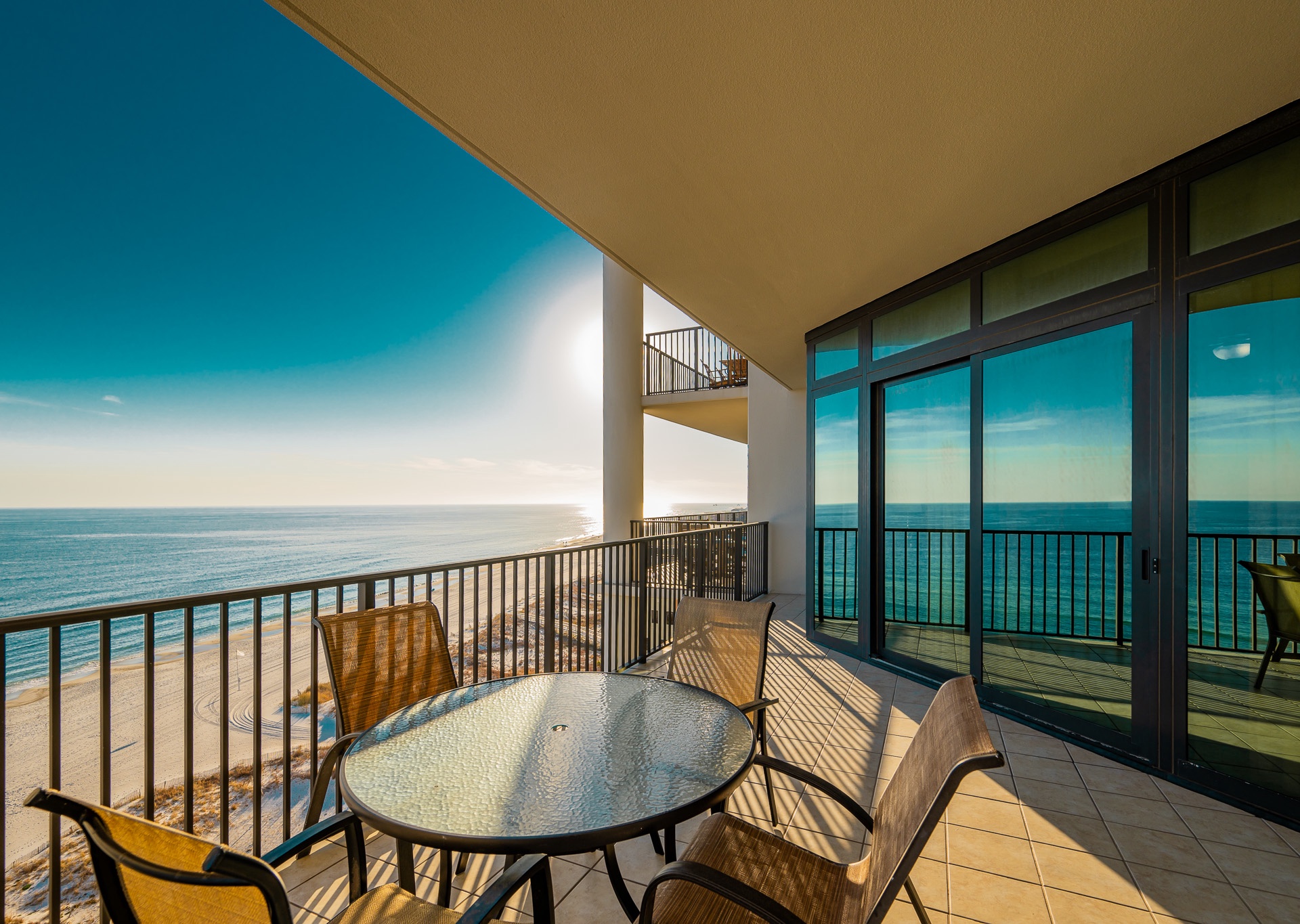 Most units at The Oasis offer private balconies with beautiful Gulf views. However, please note that some units face north and do not overlook the Gulf. We recommend reviewing the unit details carefully or contacting our team for assistance in selecting a unit that fits your preferred view.