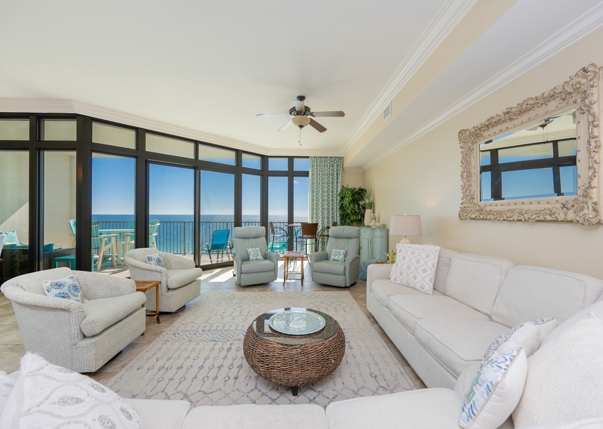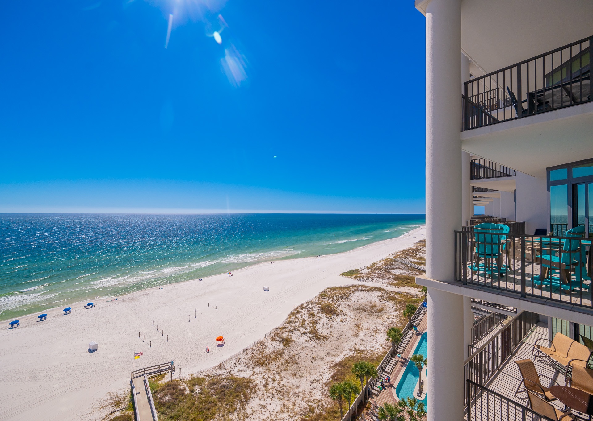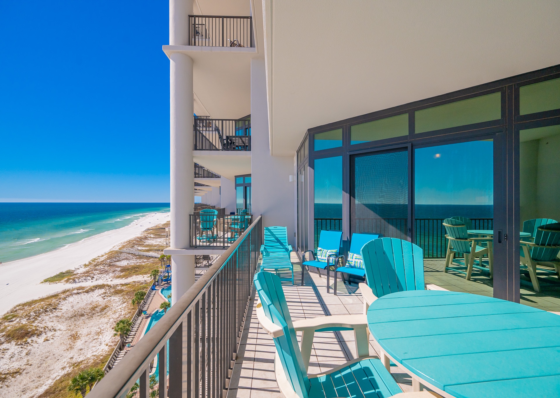 Most units at The Oasis offer private balconies with beautiful Gulf views. However, please note that some units face north and do not overlook the Gulf. We recommend reviewing the unit details carefully or contacting our team for assistance in selecting a unit that fits your preferred view.