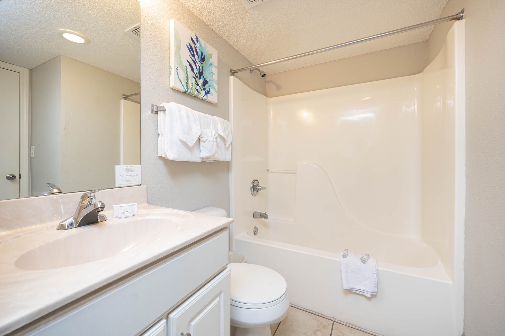 Phoenix All Suites West, situated on the pristine shores of Gulf Shores, Alabama, offers a comfortable and well-appointed one-and-a-half bath hotel suite that sleeps up to six guests. The suite features a spacious king-sized bed in the bedroom, a convenient queen sofa sleeper in the living area, and charming built-in bunk beds in the hallway, perfect for accommodating families or small groups.