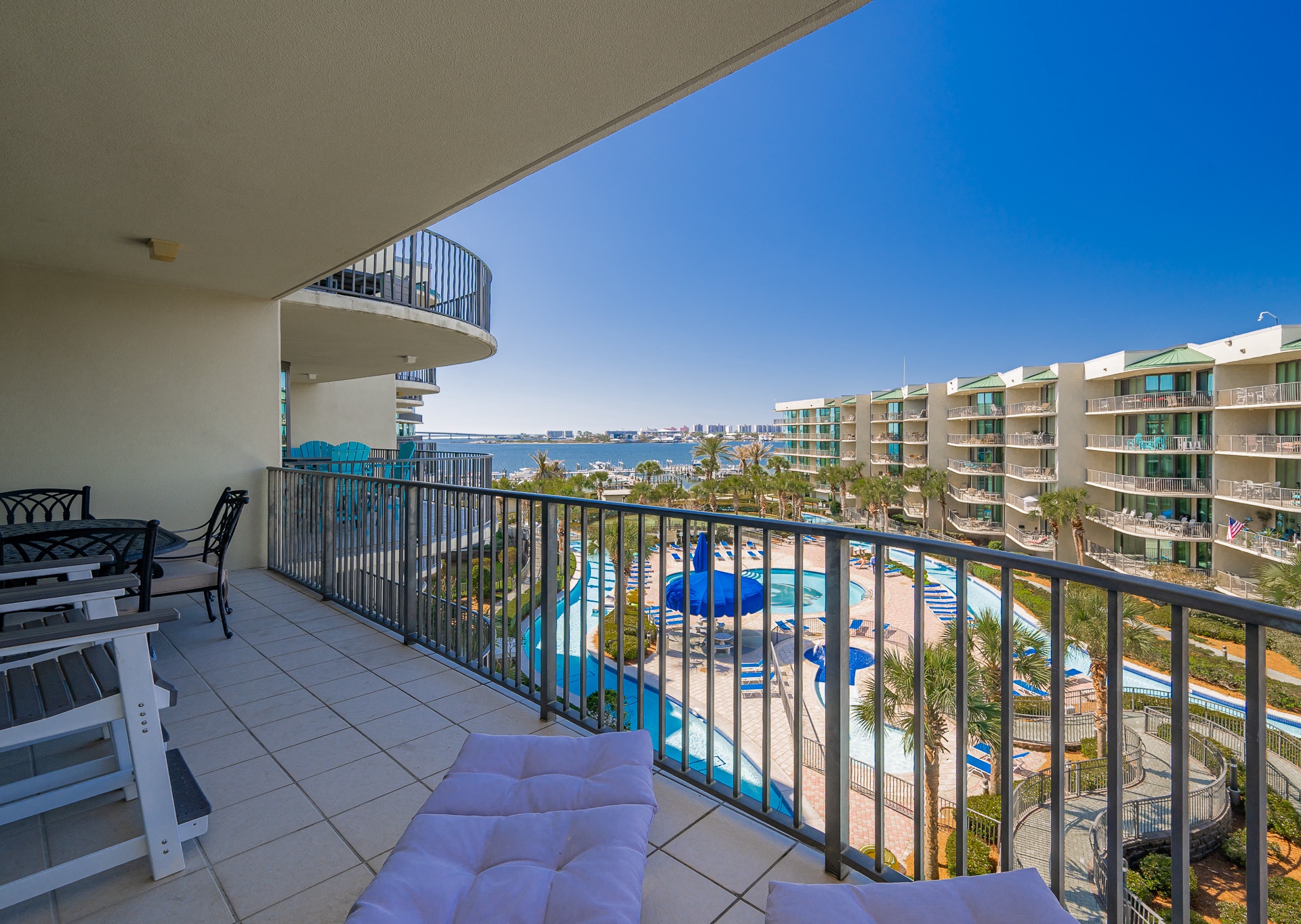 Yes, all Phoenix on the Bay vacation rentals have views of Terry Cove, Robinson Island, and Perdido Pass from private balconies.