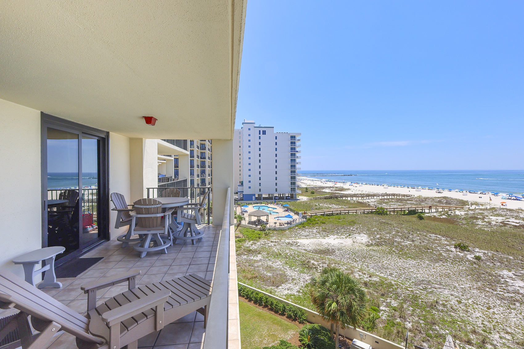 Phoenix VII Orange Beach is equipped with accessibility features to ensure that guests can enjoy their stay. The resort has accessible entrances and public areas, including ramps and elevators. The units were also originally designed with accessibility in mind. Contact us at 1-800-211-7892 to discuss accommodations and options.