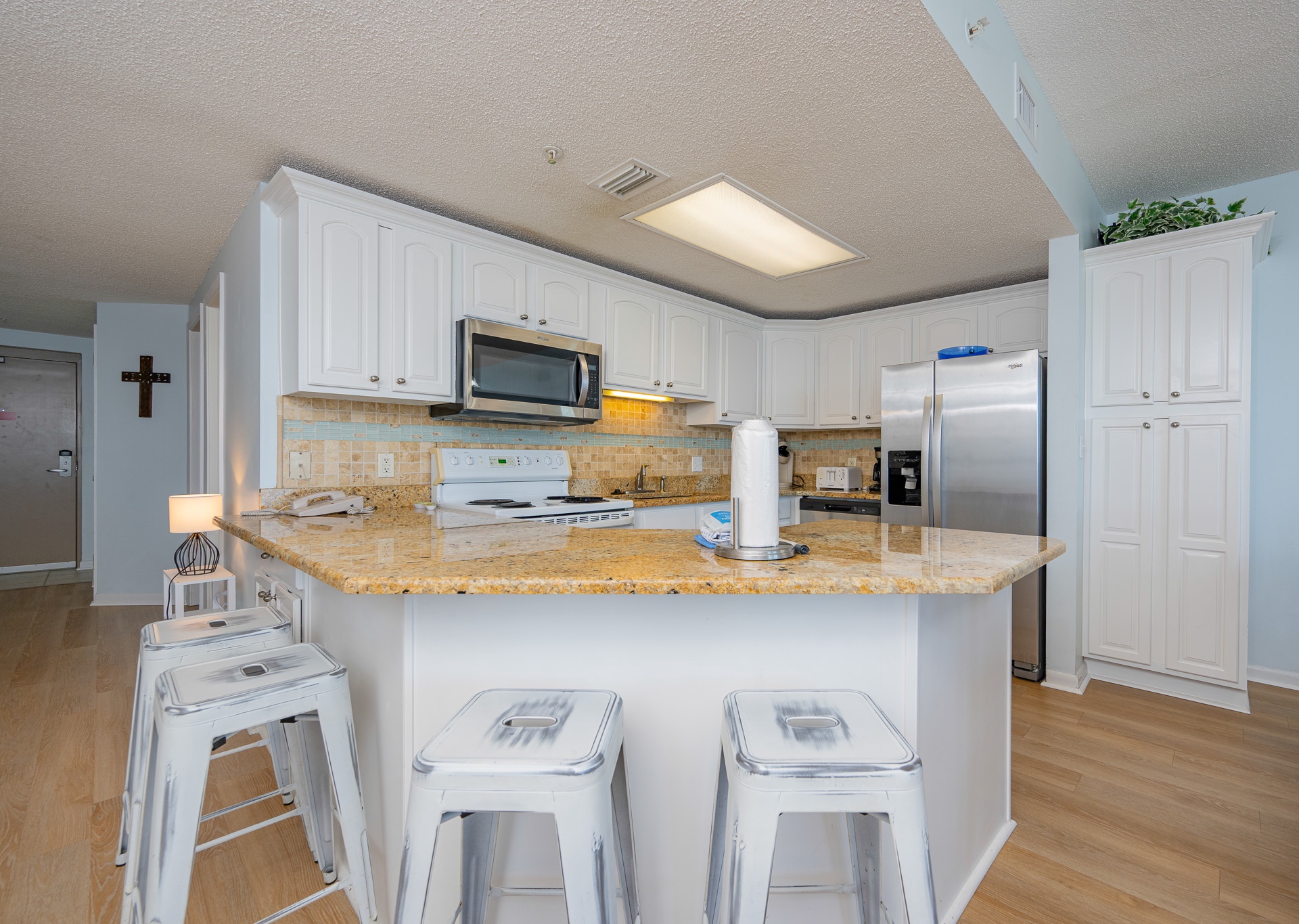 Each Phoenix 10 condo rental also offers unique amenities, including the following: fully-furnished rooms, Gulf-front views, beach access, private balcony, floor-to-ceiling windows, full kitchen, washer and dryer, air conditioning, dishwasher, free Wi-Fi, smoke detectors, carbon monoxide detectors, televisions, satellite or cable, full-time on-site staff, and more. View unit detail pages for amenities specific to your rental.