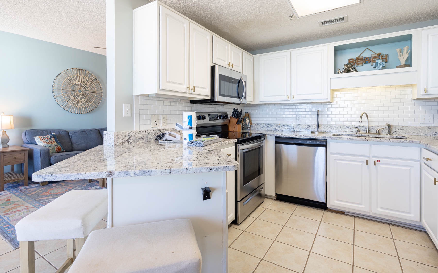 Each Phoenix 10 condo rental also offers unique amenities, including the following: fully-furnished rooms, Gulf-front views, beach access, private balcony, floor-to-ceiling windows, full kitchen, washer and dryer, air conditioning, dishwasher, free Wi-Fi, smoke detectors, carbon monoxide detectors, televisions, satellite or cable, full-time on-site staff, and more. View unit detail pages for amenities specific to your rental.