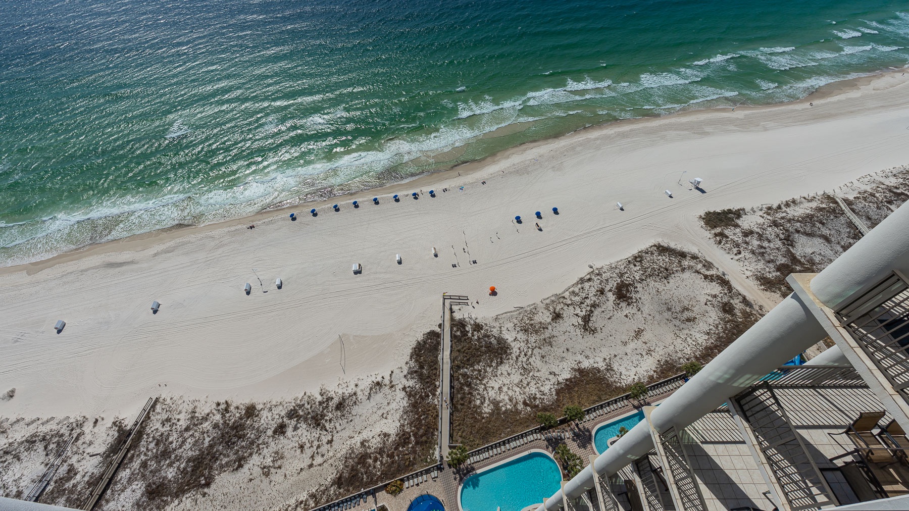 Most units at The Oasis offer private balconies with beautiful Gulf views. However, please note that some units face north and do not overlook the Gulf. We recommend reviewing the unit details carefully or contacting our team for assistance in selecting a unit that fits your preferred view.