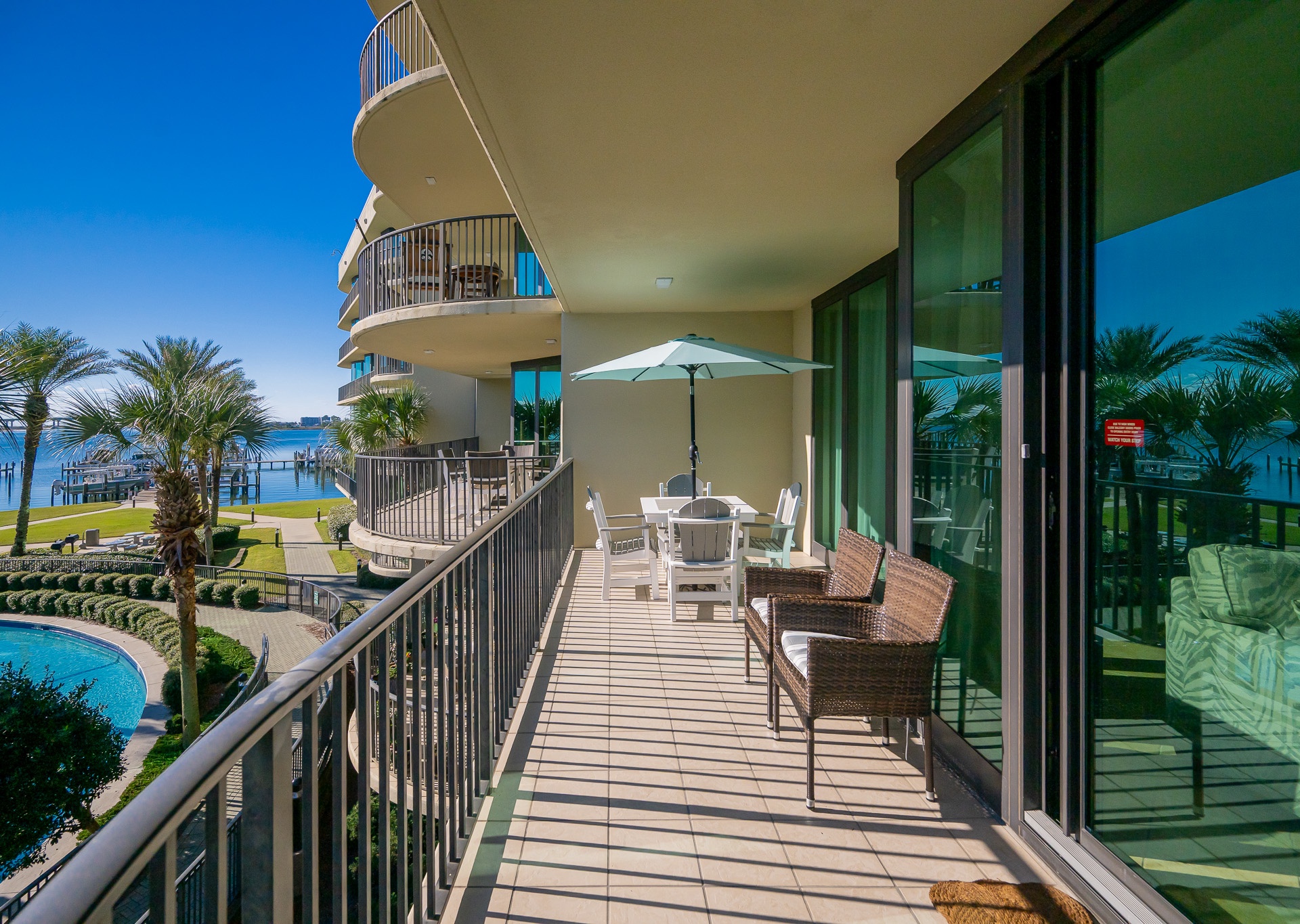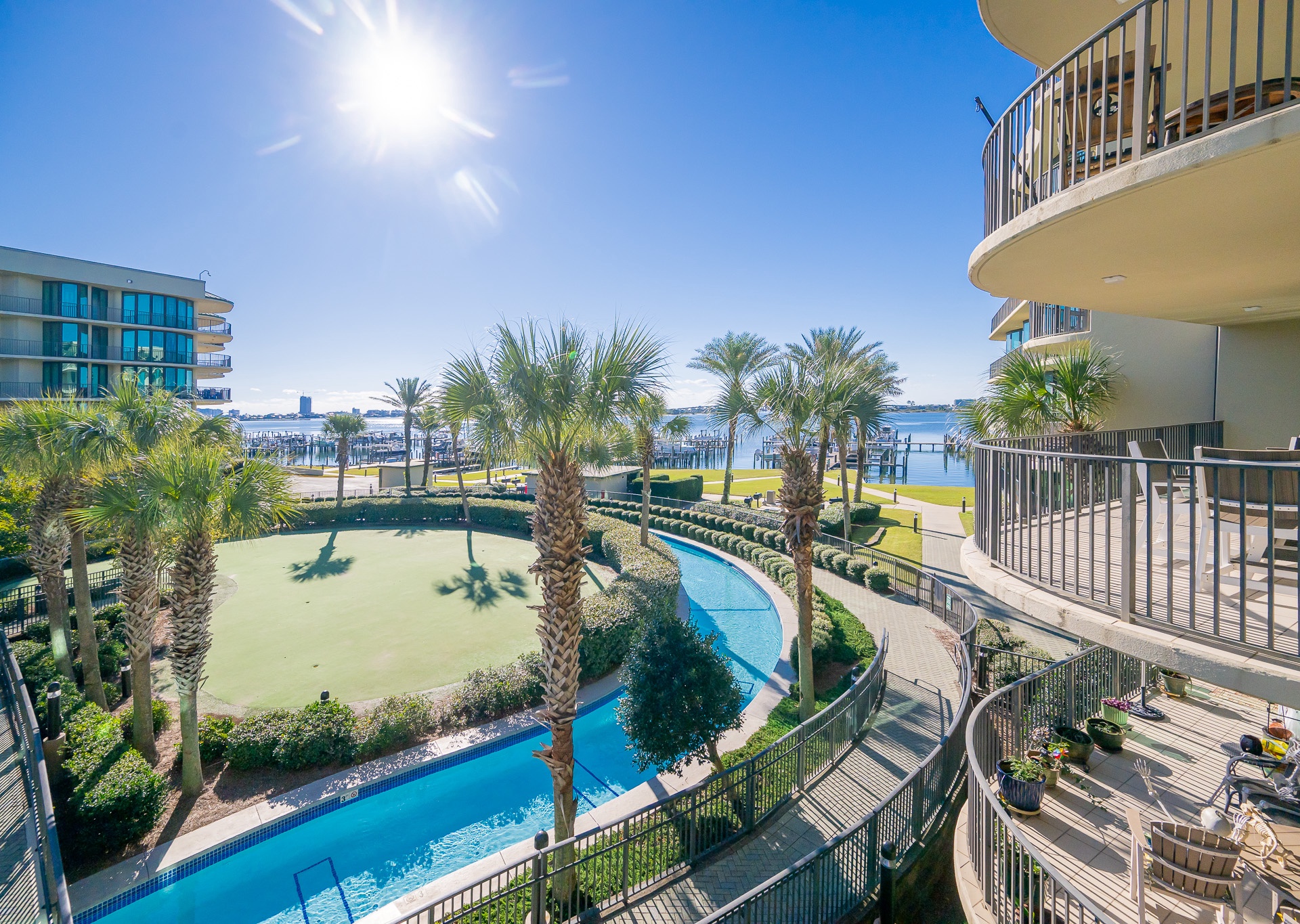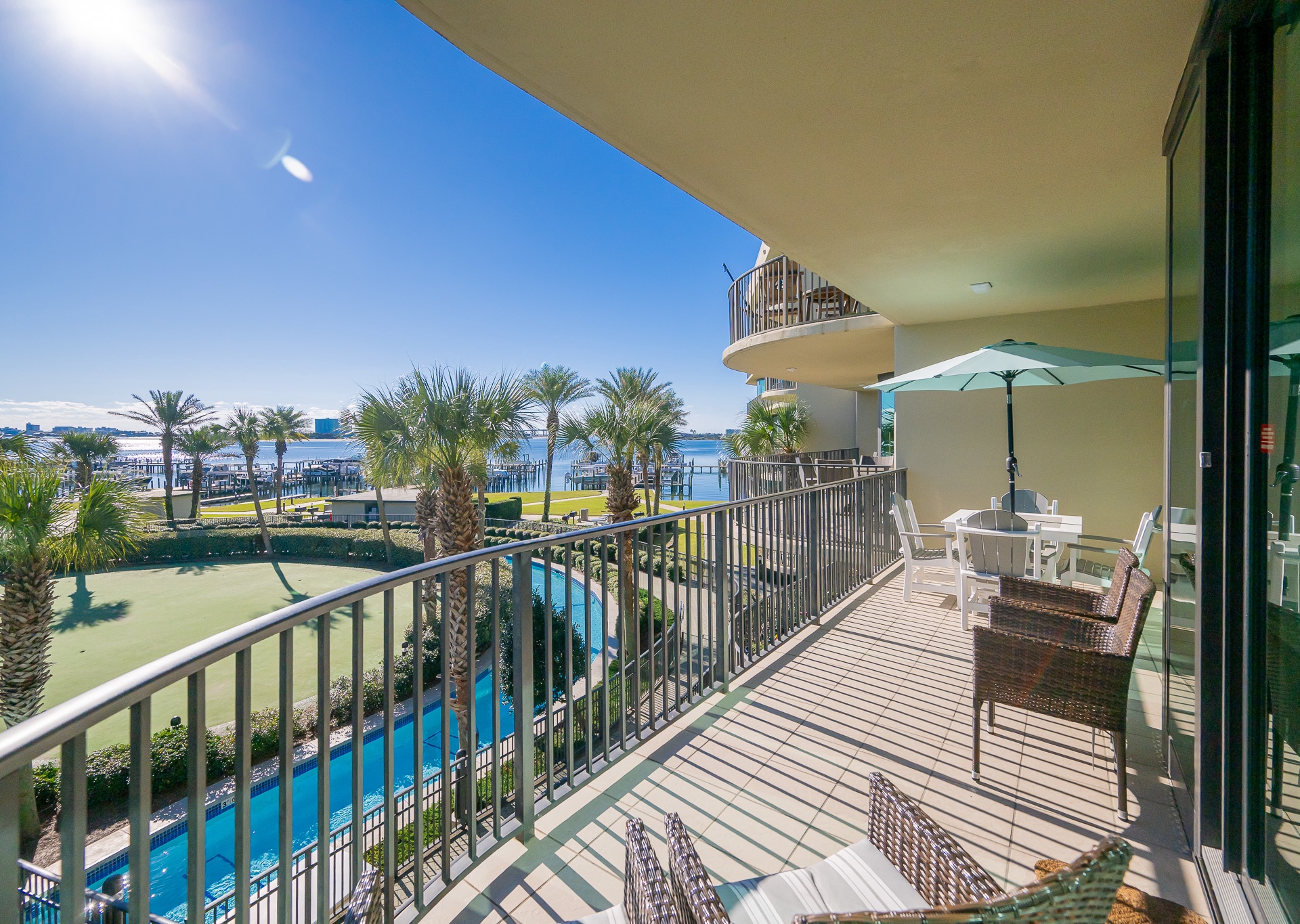 Yes, all Phoenix on the Bay vacation rentals have views of Terry Cove, Robinson Island, and Perdido Pass from private balconies.